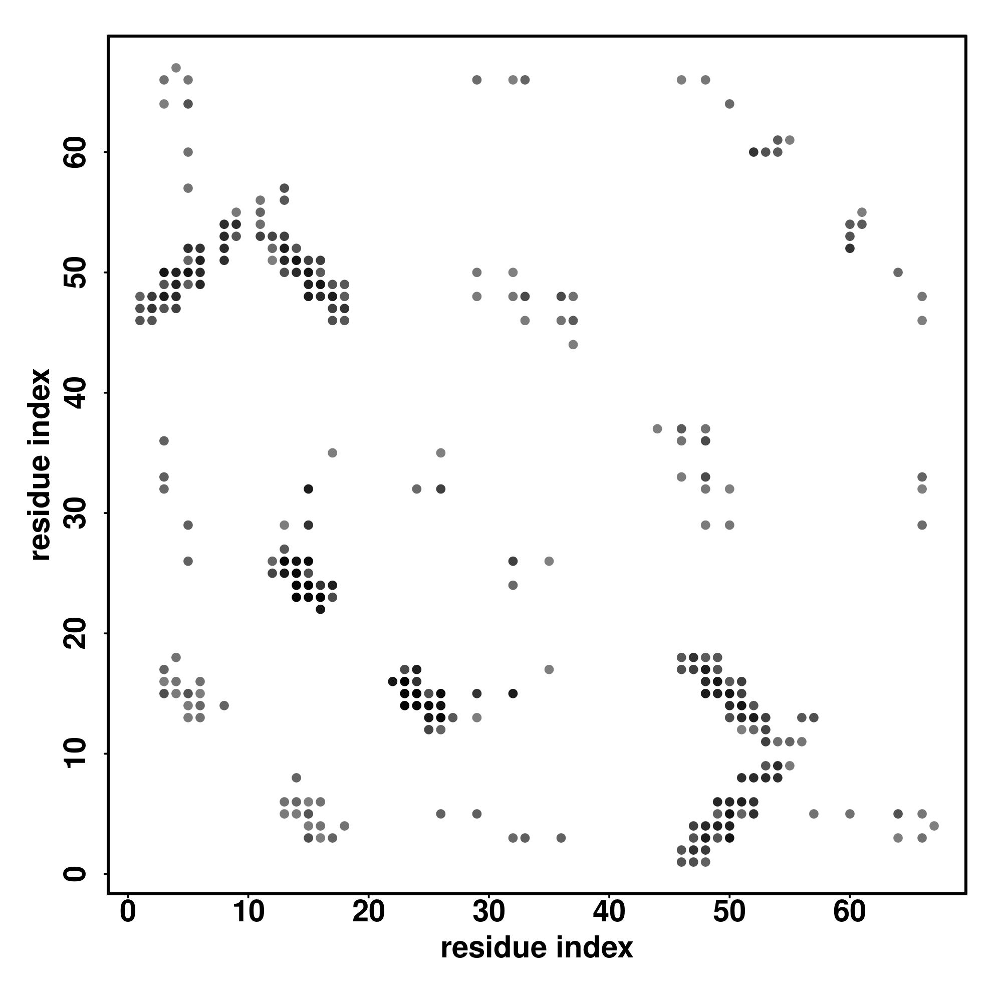 For the contact map, each dot represents a residue pair with predicted contact,