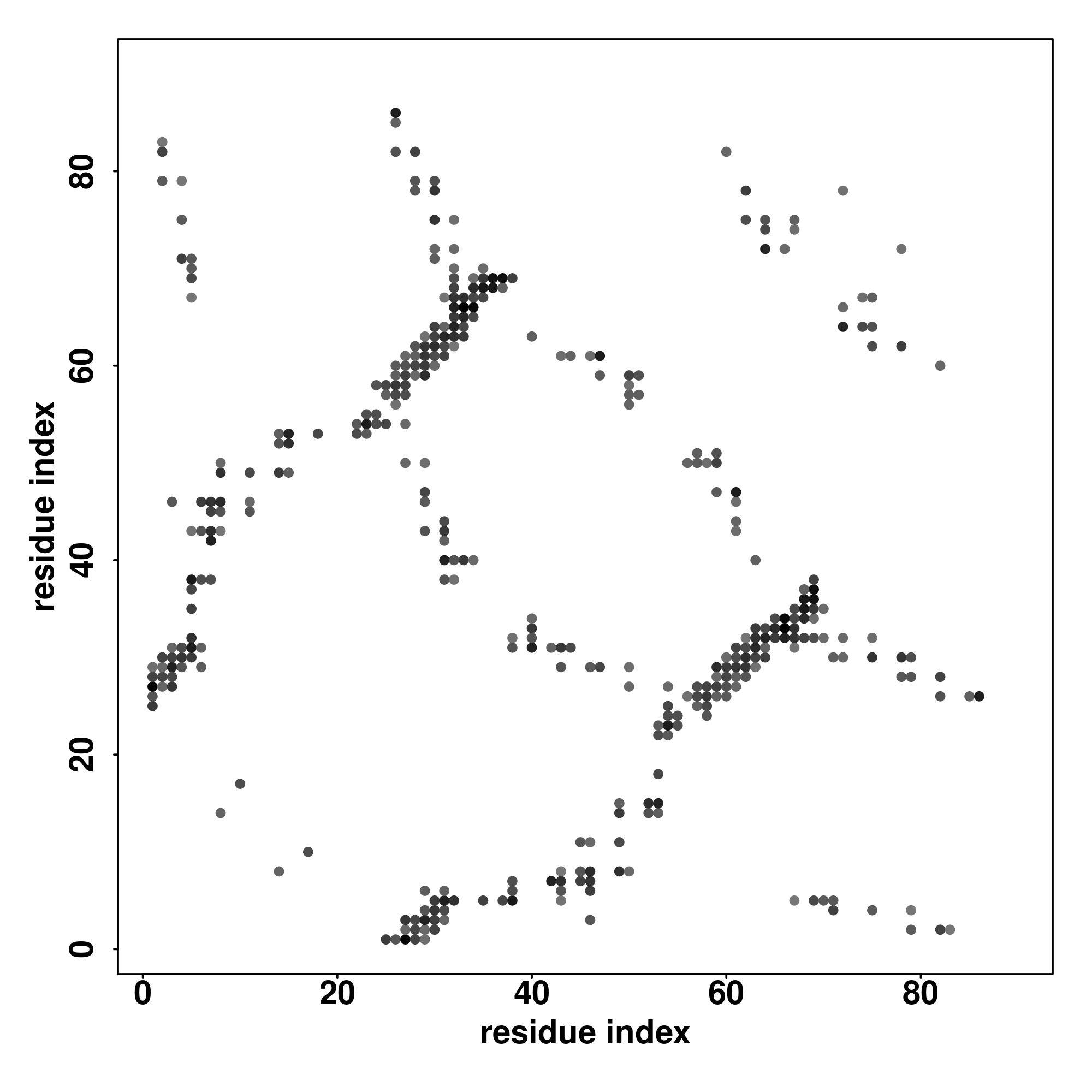 For the contact map, each dot represents a residue pair with predicted contact,