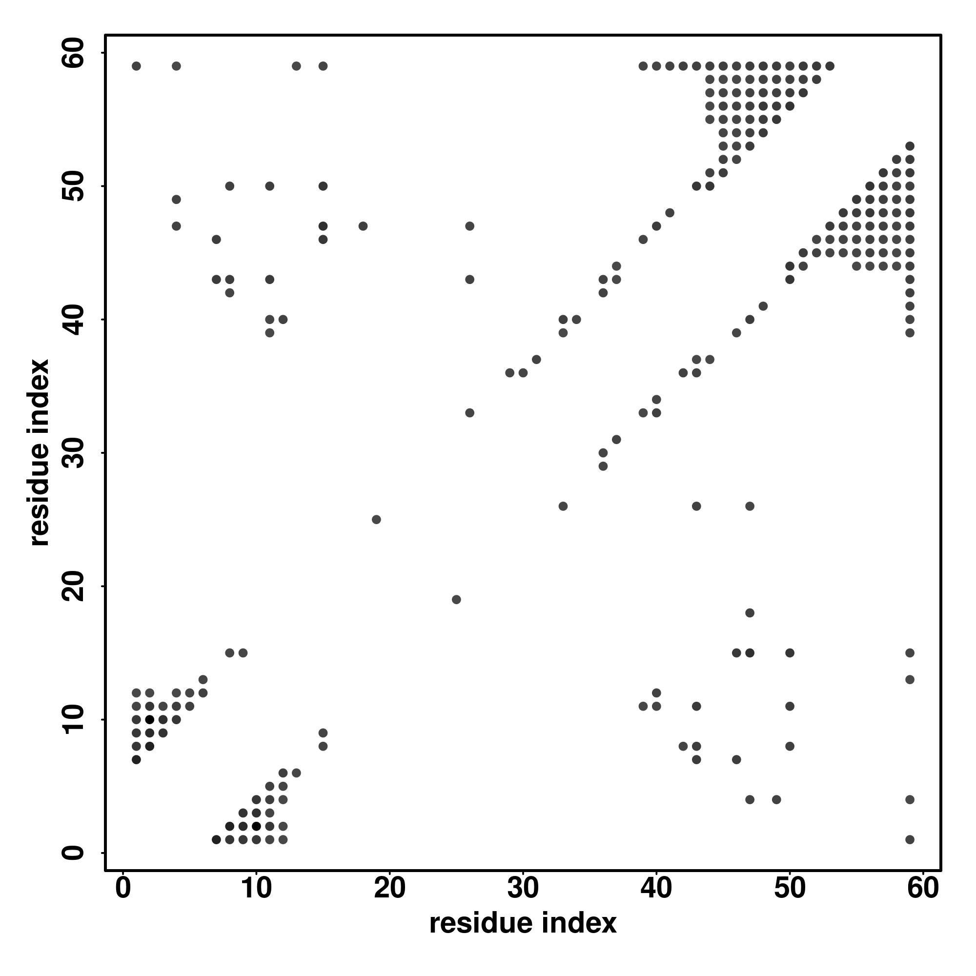 For the contact map, each dot represents a residue pair with predicted contact,