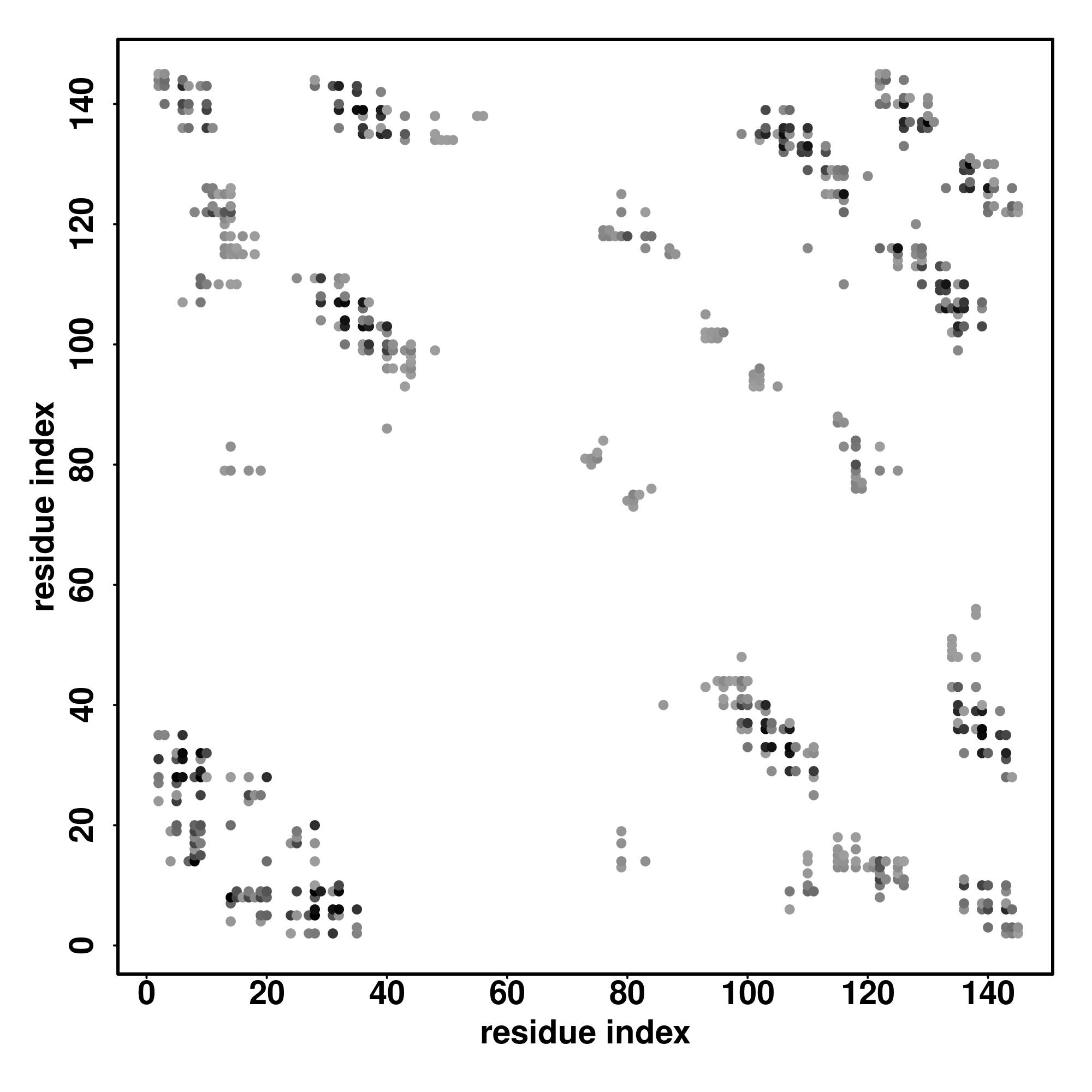 For the contact map, each dot represents a residue pair with predicted contact,