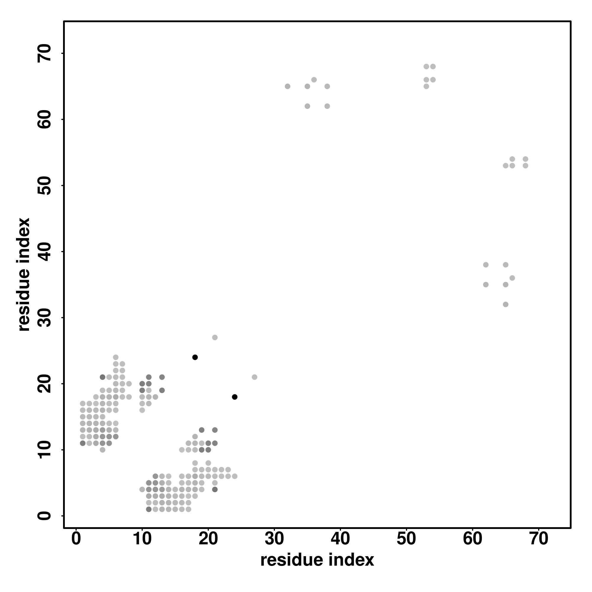 For the contact map, each dot represents a residue pair with predicted contact,