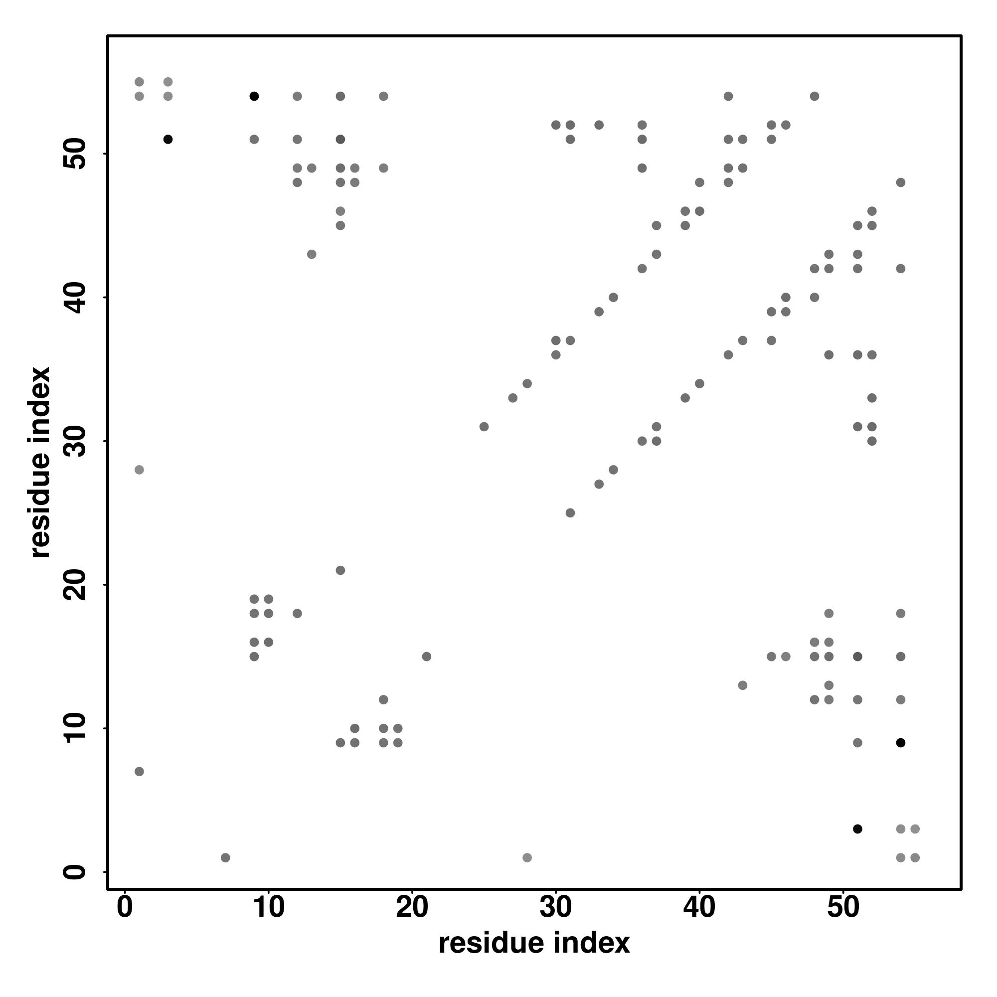 For the contact map, each dot represents a residue pair with predicted contact,