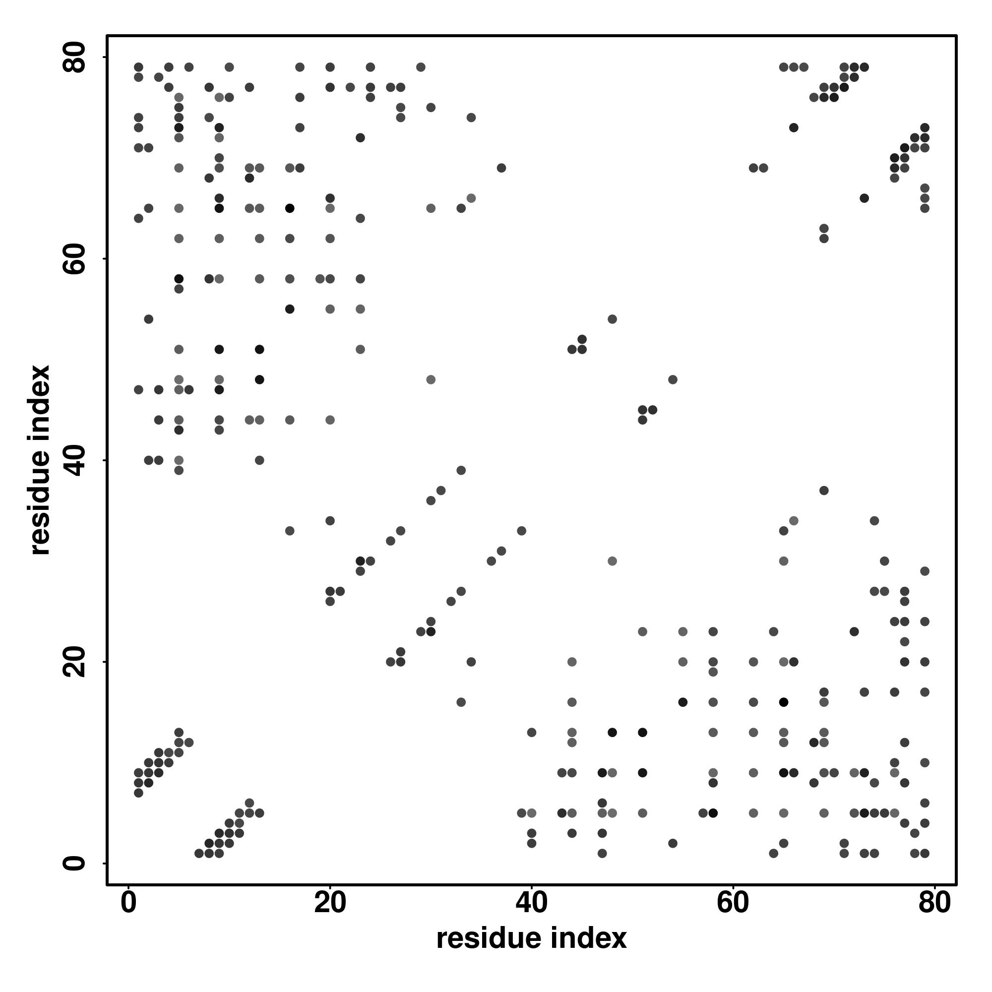 For the contact map, each dot represents a residue pair with predicted contact,