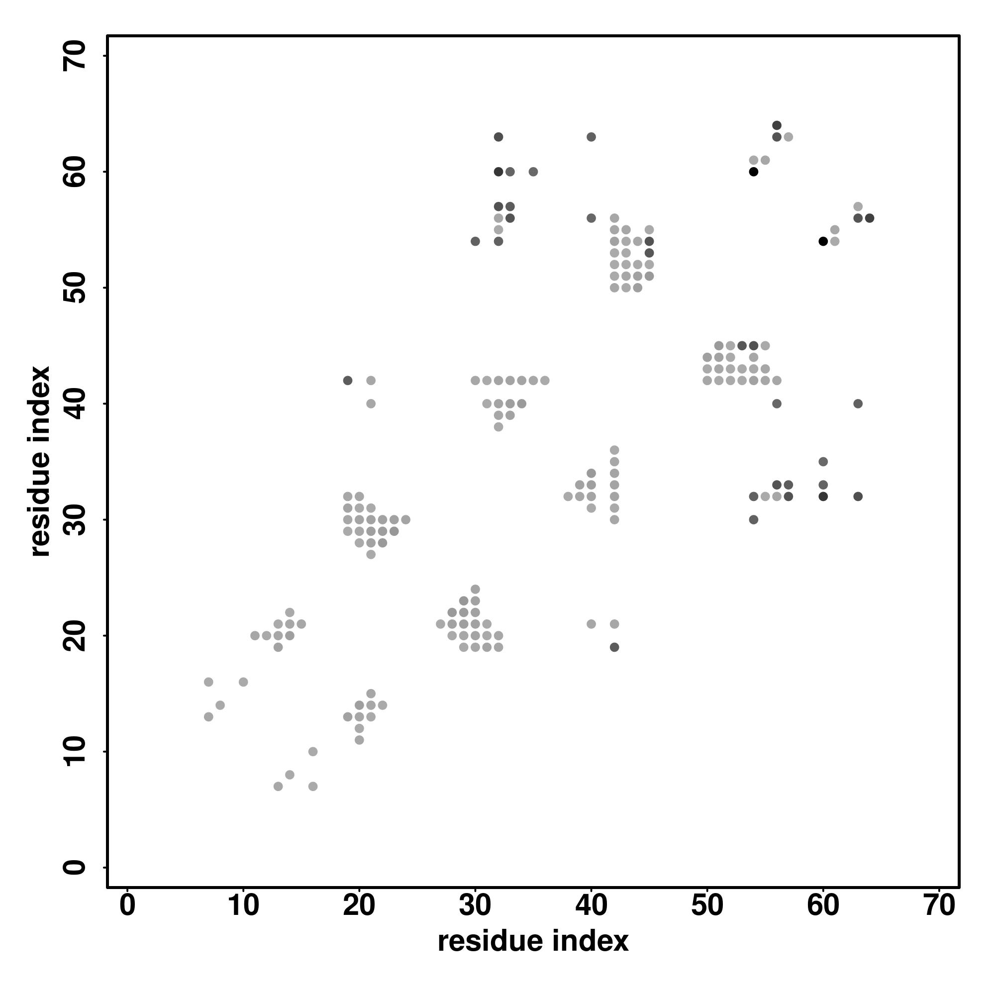 For the contact map, each dot represents a residue pair with predicted contact,