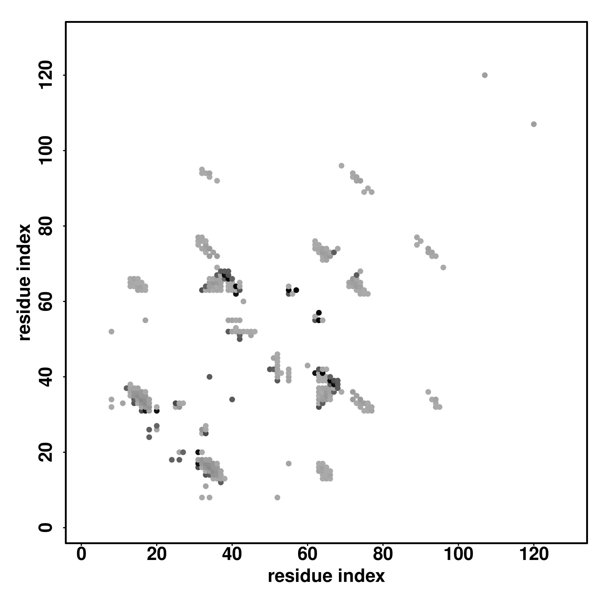For the contact map, each dot represents a residue pair with predicted contact,