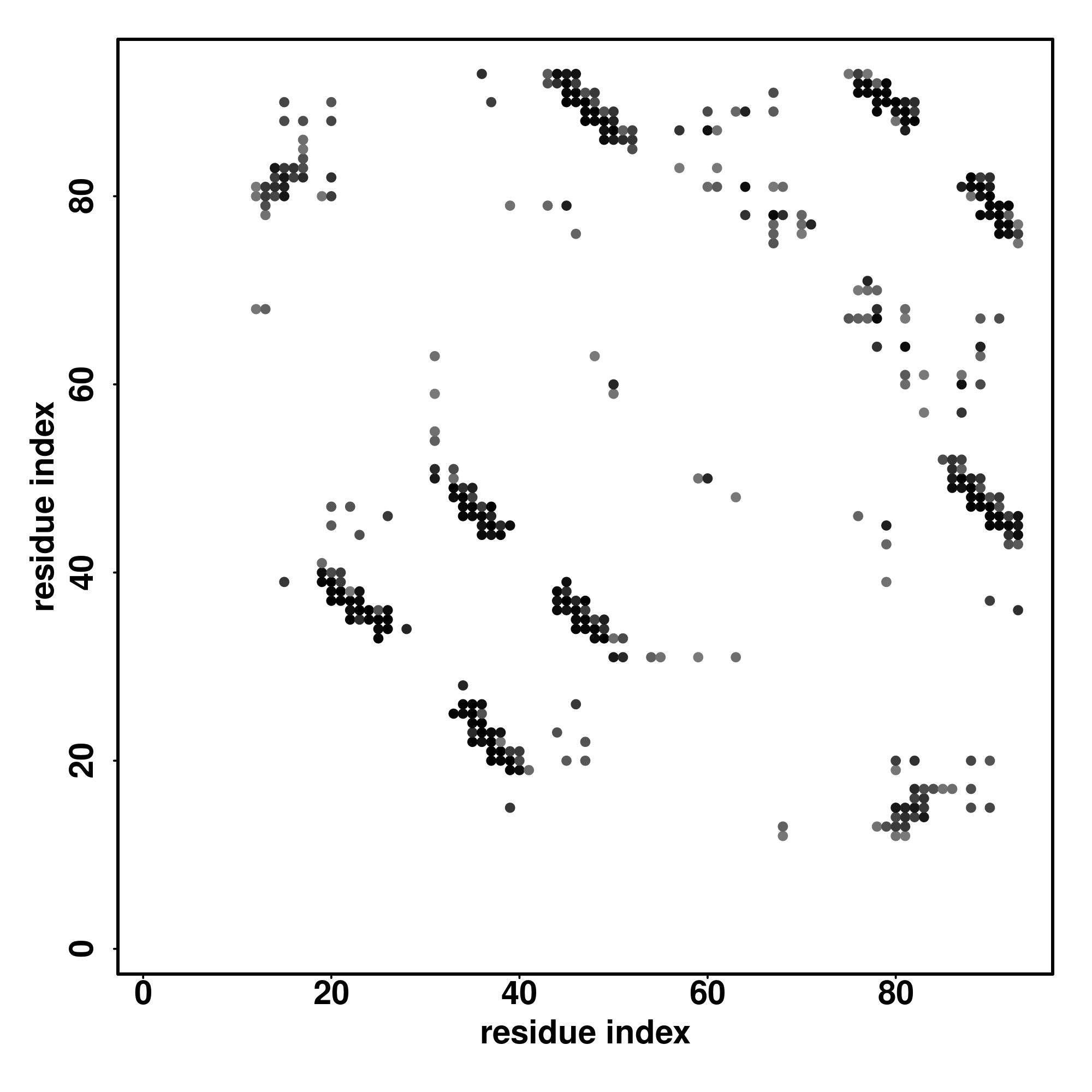 For the contact map, each dot represents a residue pair with predicted contact,