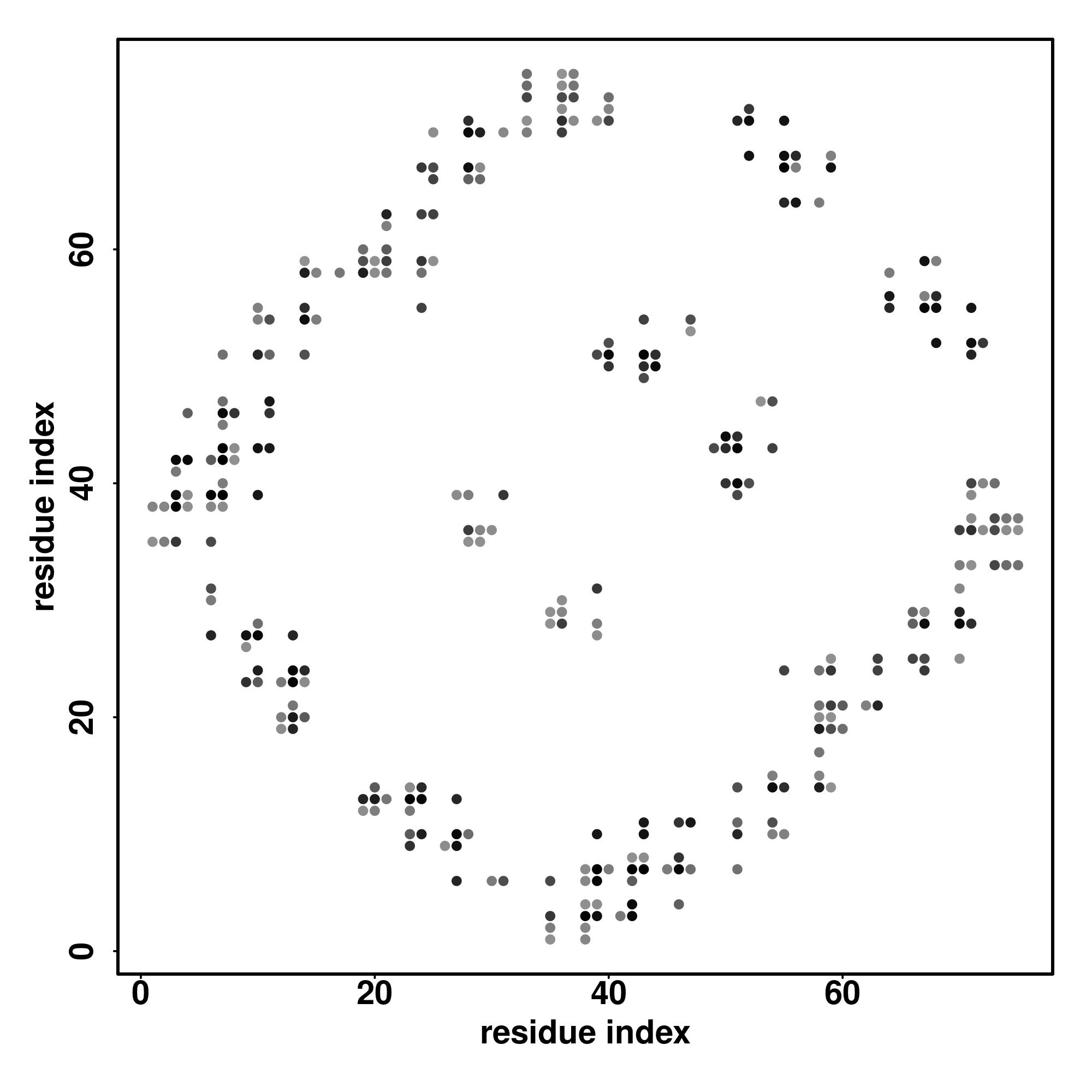 For the contact map, each dot represents a residue pair with predicted contact,