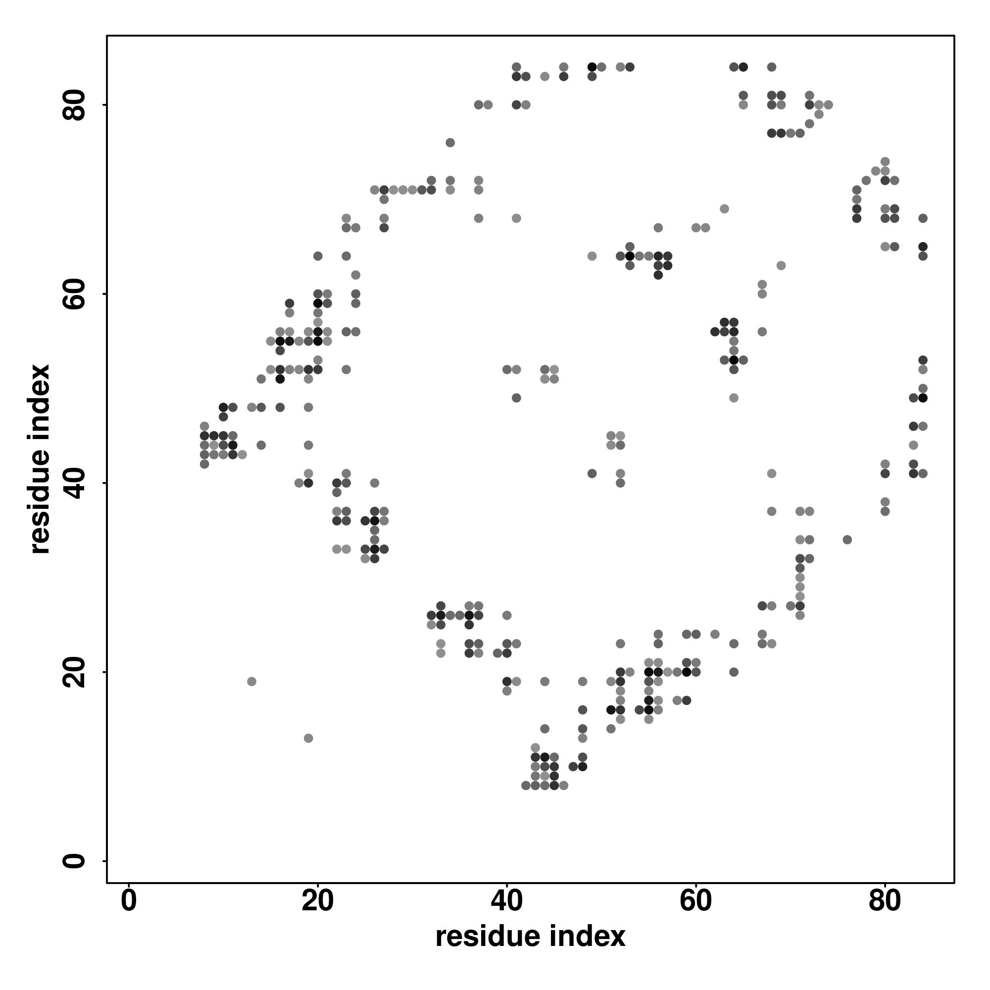 For the contact map, each dot represents a residue pair with predicted contact,