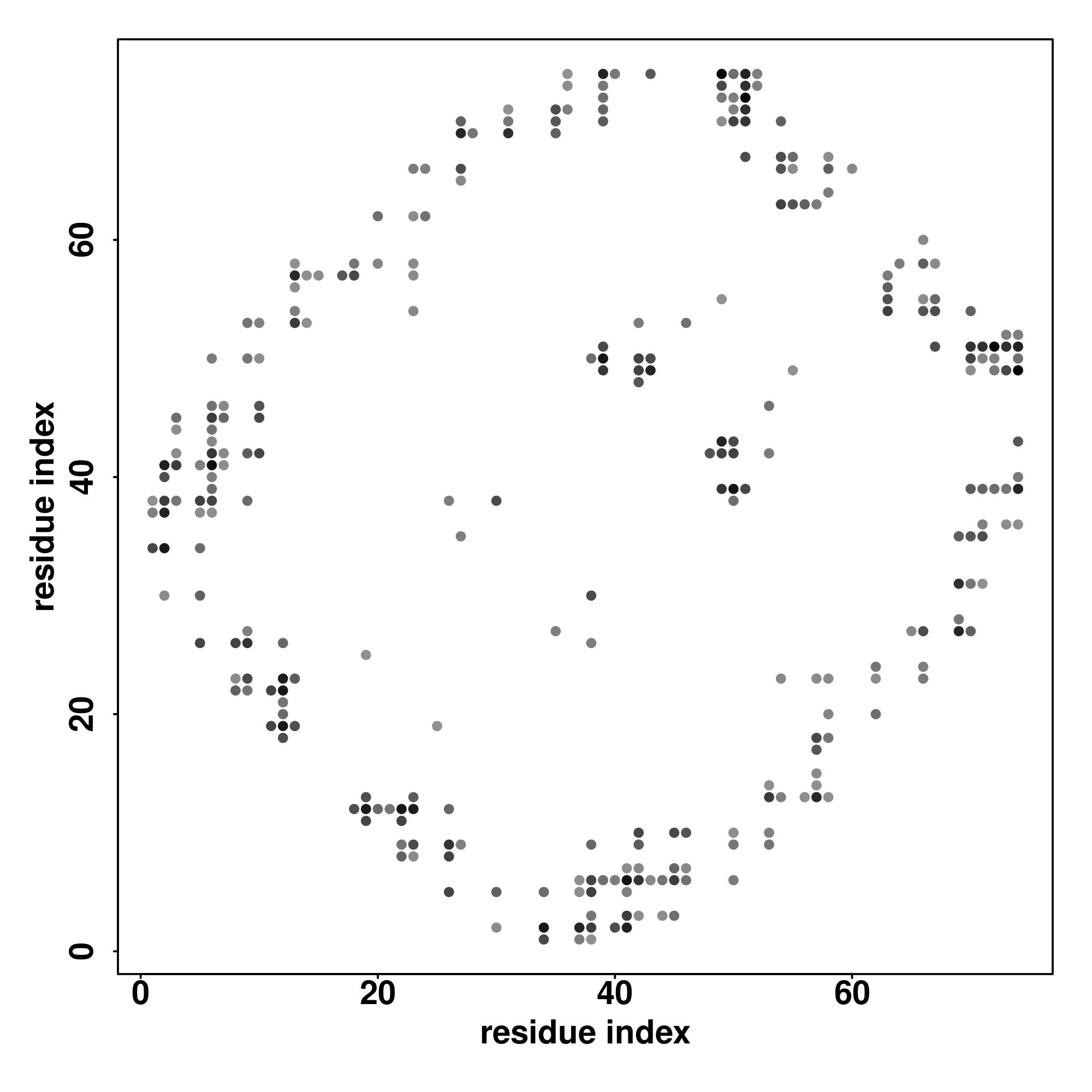 For the contact map, each dot represents a residue pair with predicted contact,