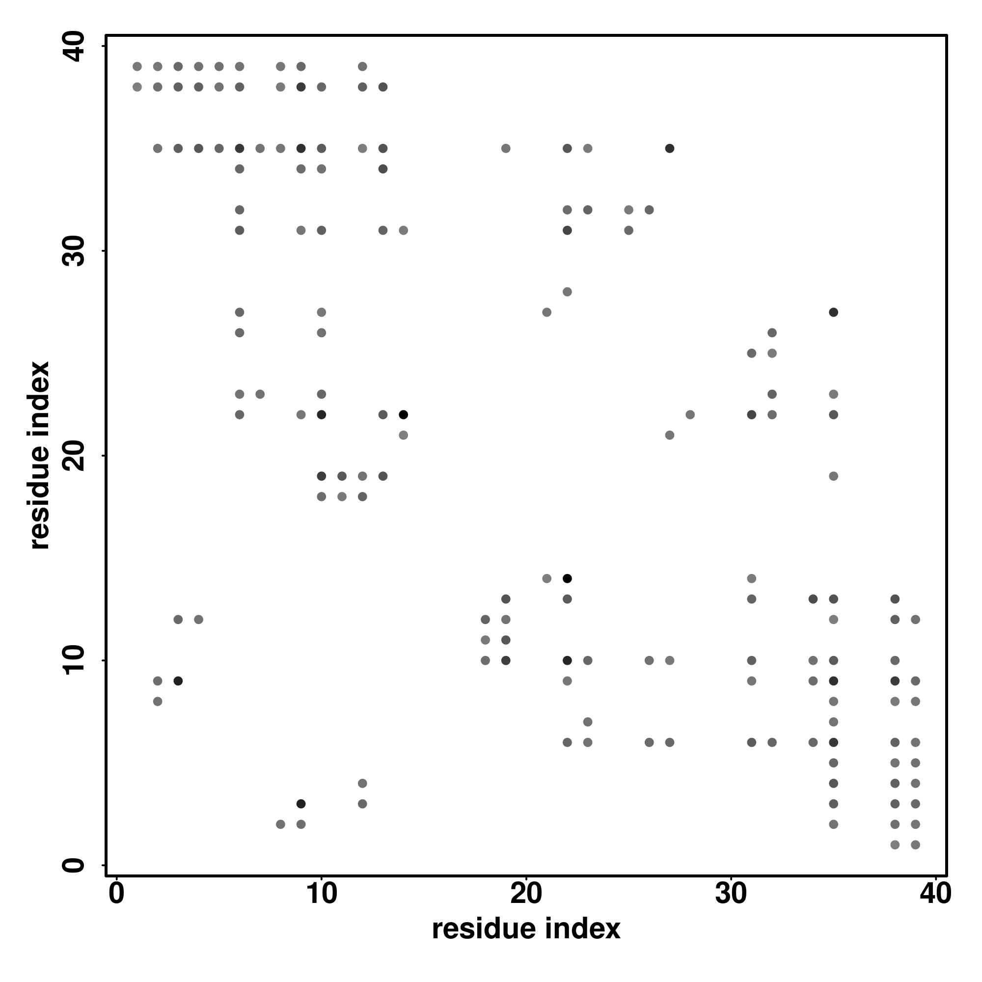 For the contact map, each dot represents a residue pair with predicted contact,