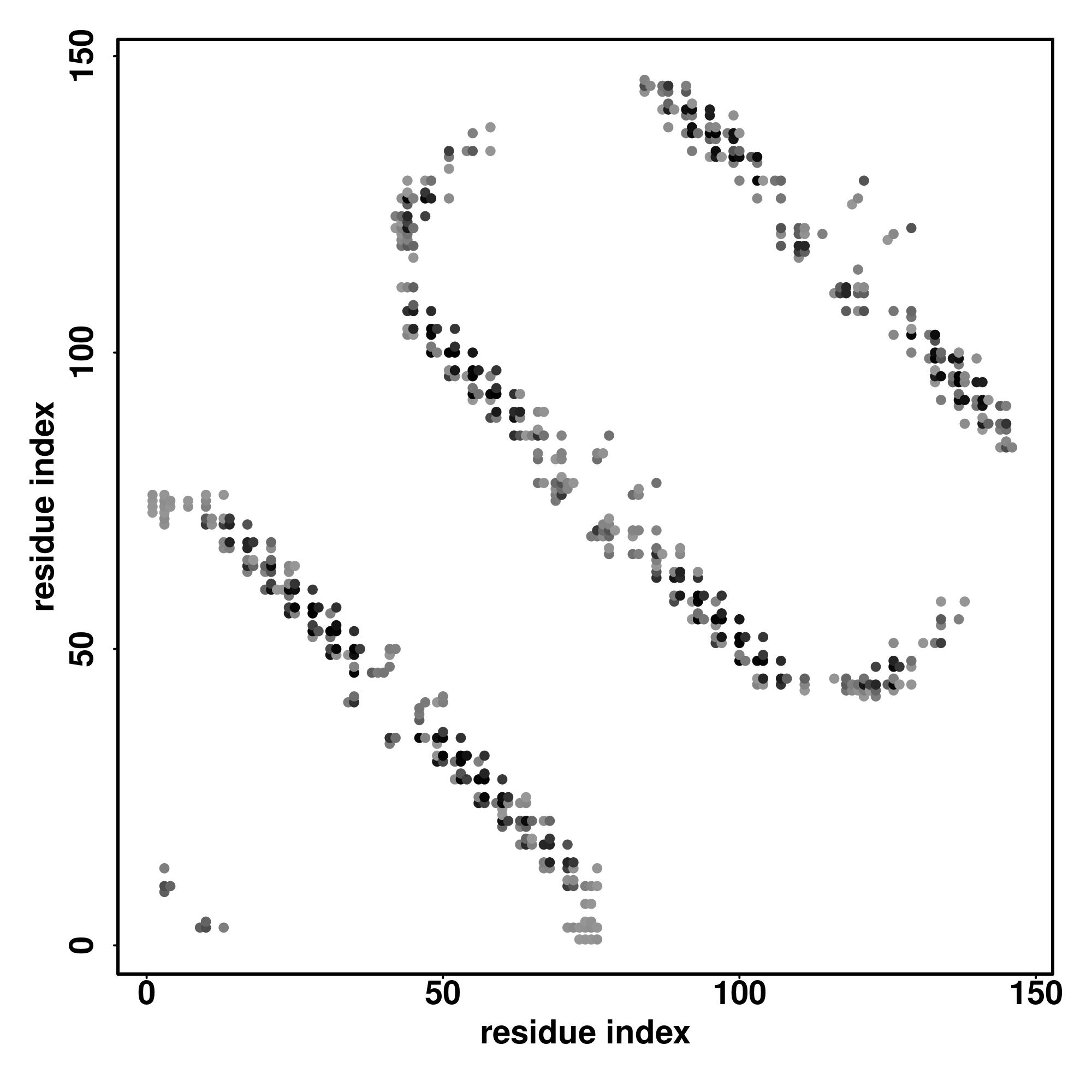 For the contact map, each dot represents a residue pair with predicted contact,