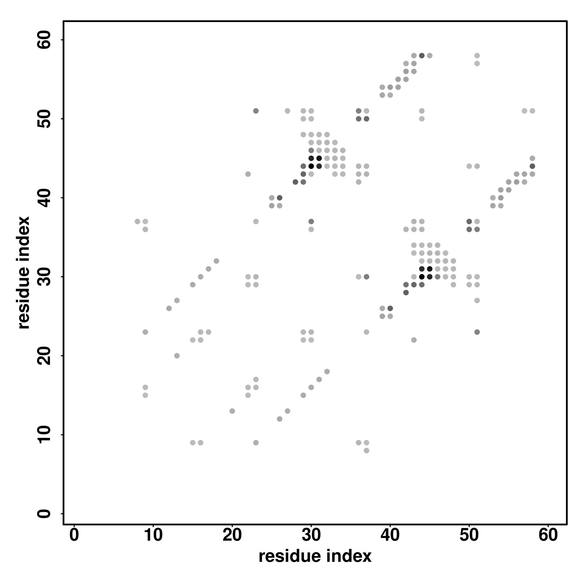 For the contact map, each dot represents a residue pair with predicted contact,