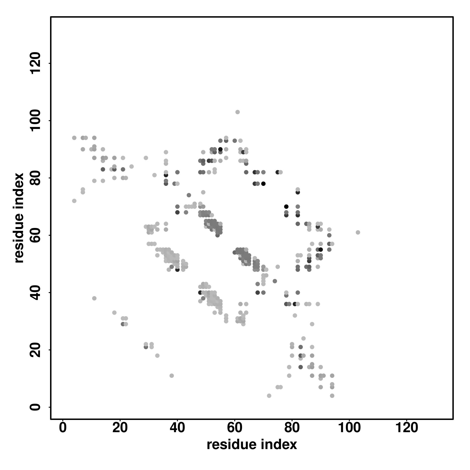 For the contact map, each dot represents a residue pair with predicted contact,