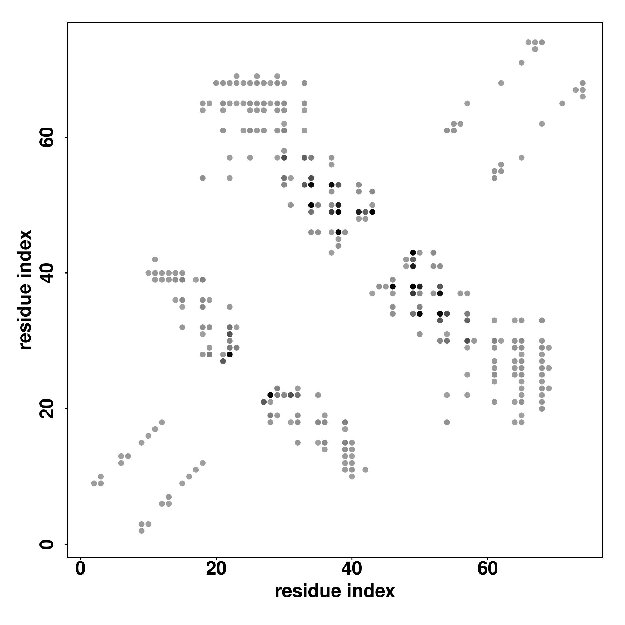 For the contact map, each dot represents a residue pair with predicted contact,