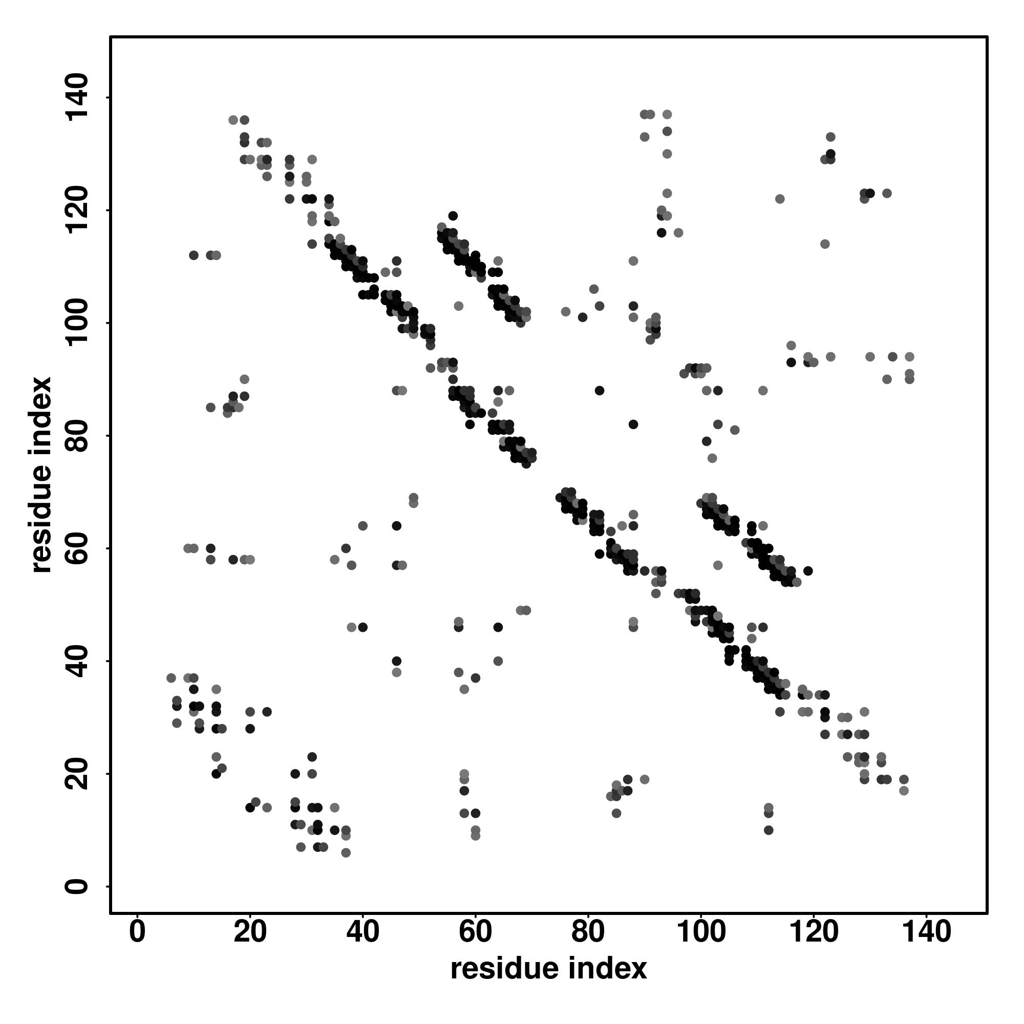 For the contact map, each dot represents a residue pair with predicted contact,
