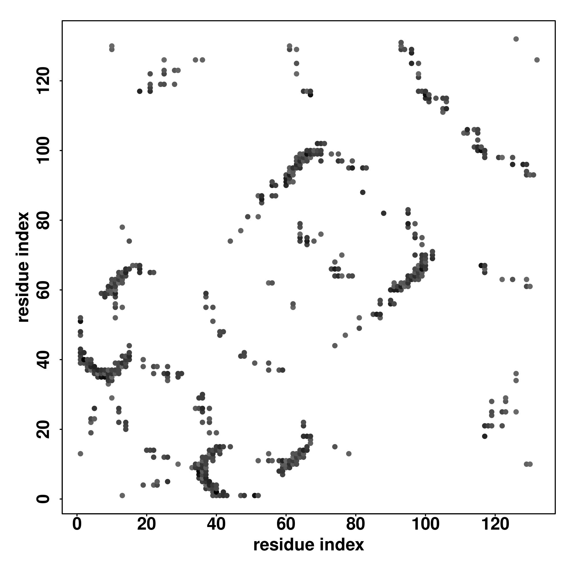 For the contact map, each dot represents a residue pair with predicted contact,