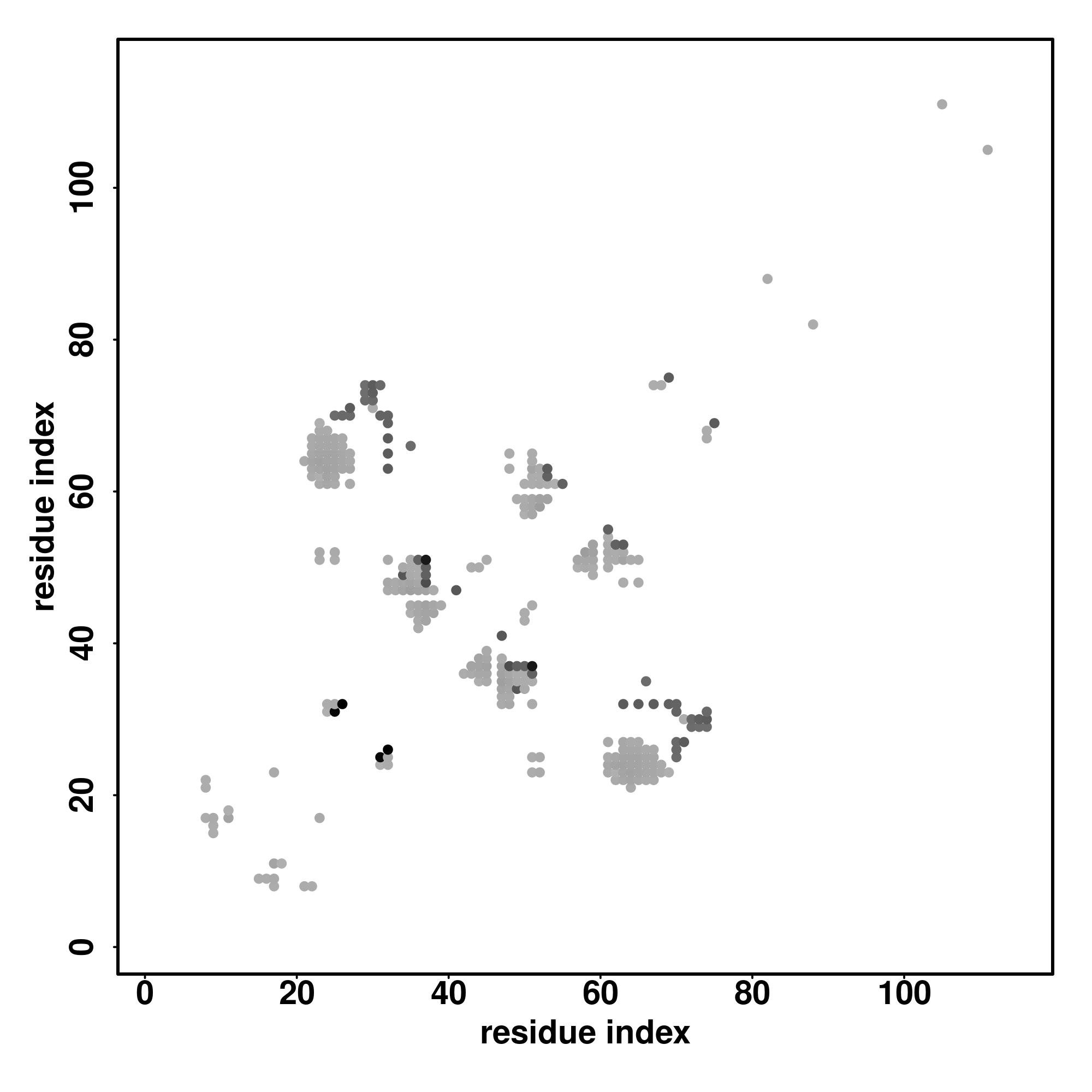 For the contact map, each dot represents a residue pair with predicted contact,