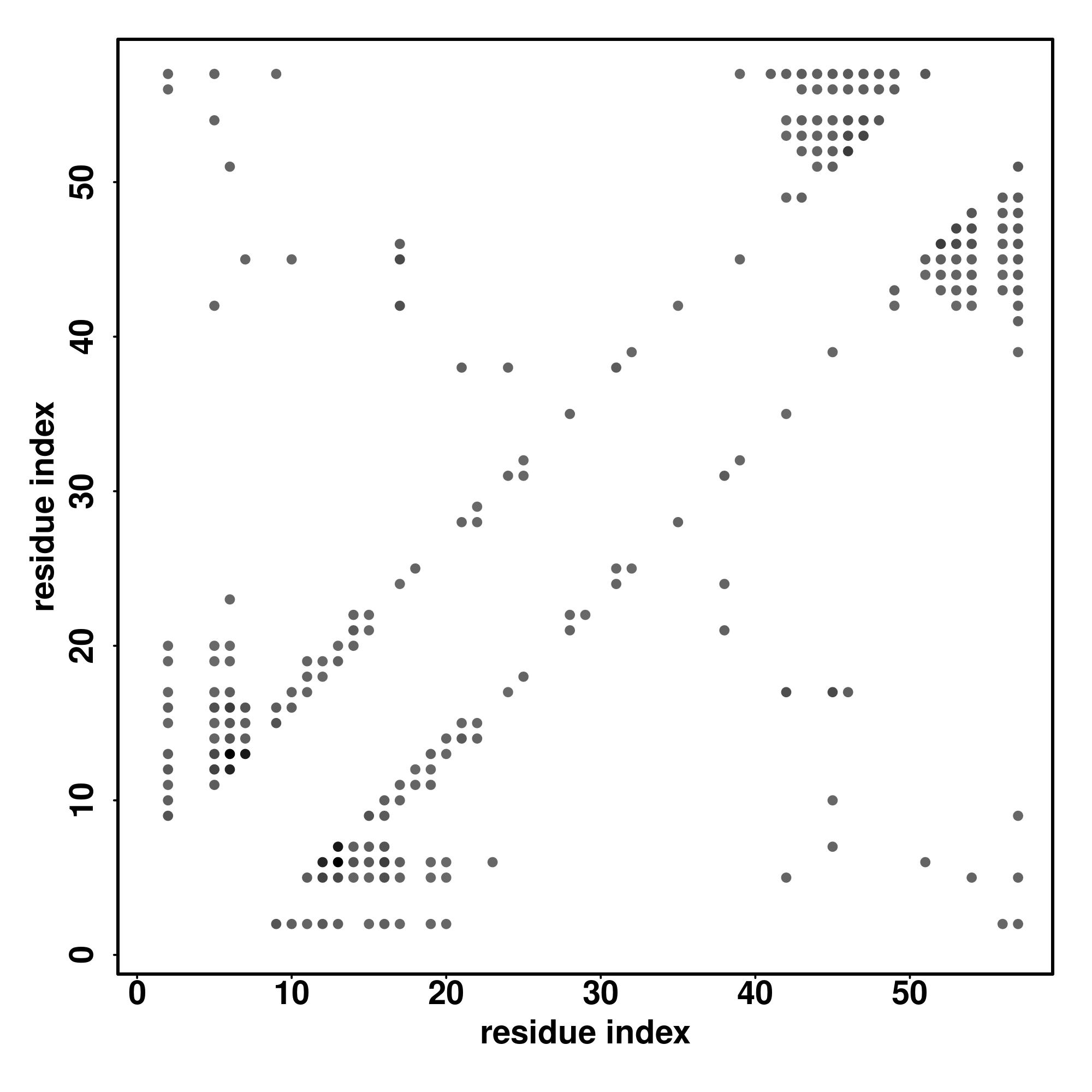 For the contact map, each dot represents a residue pair with predicted contact,
