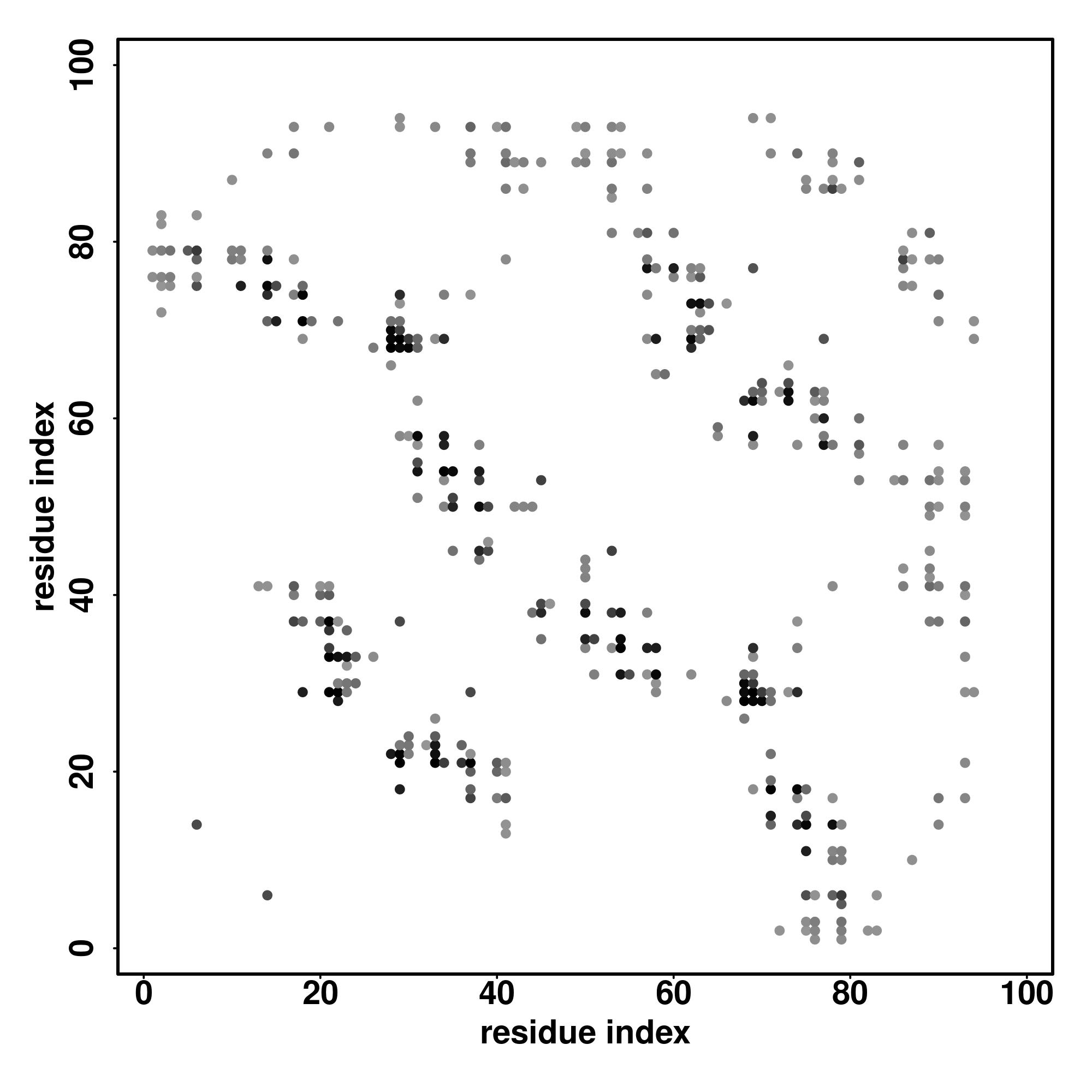 For the contact map, each dot represents a residue pair with predicted contact,
