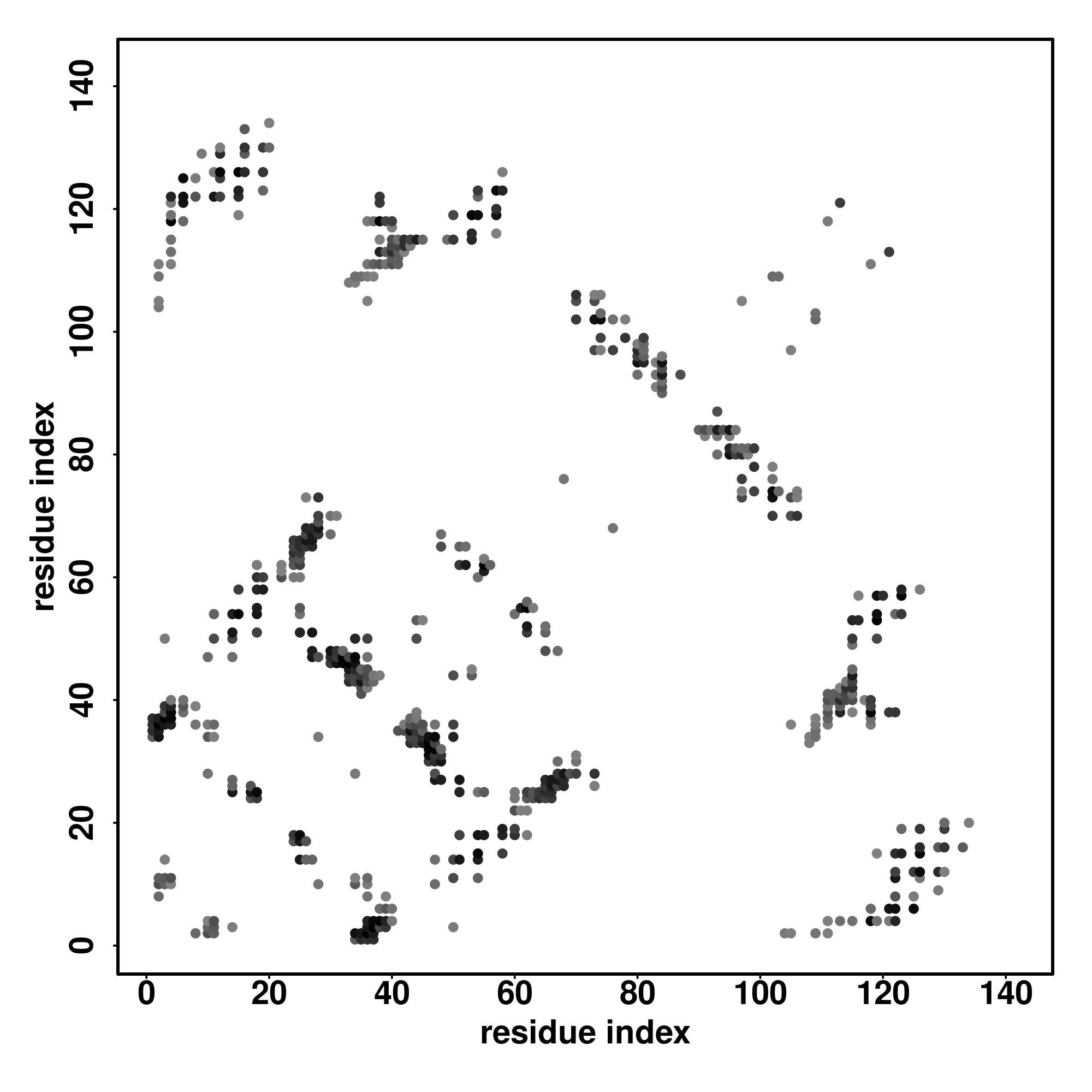 For the contact map, each dot represents a residue pair with predicted contact,