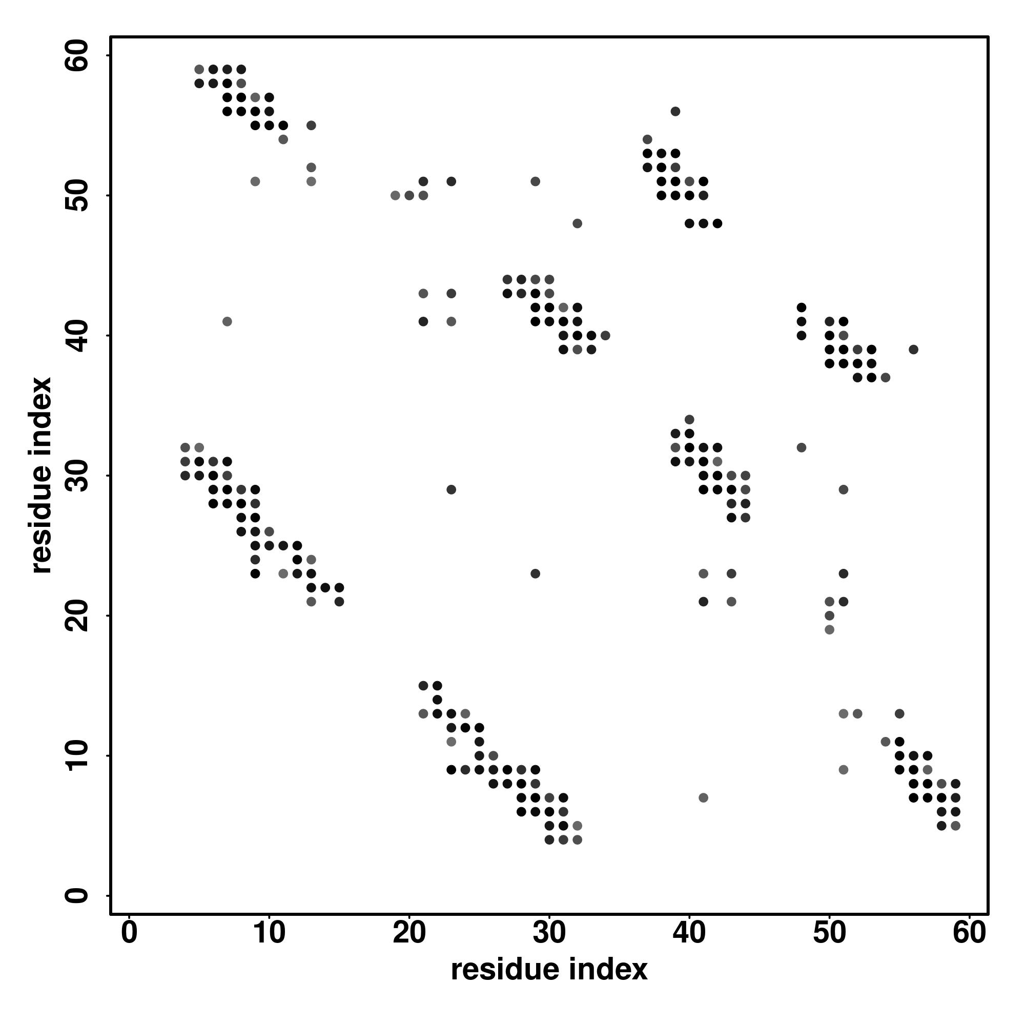 For the contact map, each dot represents a residue pair with predicted contact,