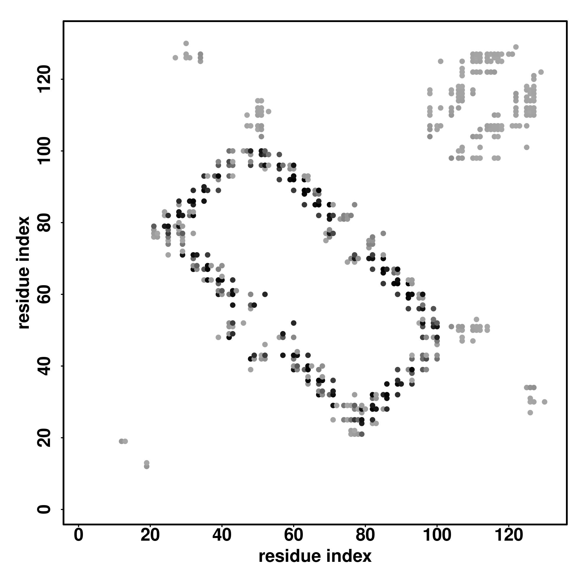 For the contact map, each dot represents a residue pair with predicted contact,