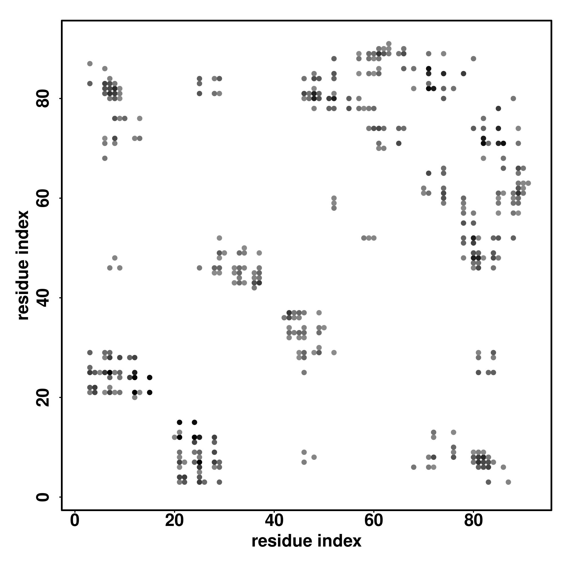 For the contact map, each dot represents a residue pair with predicted contact,