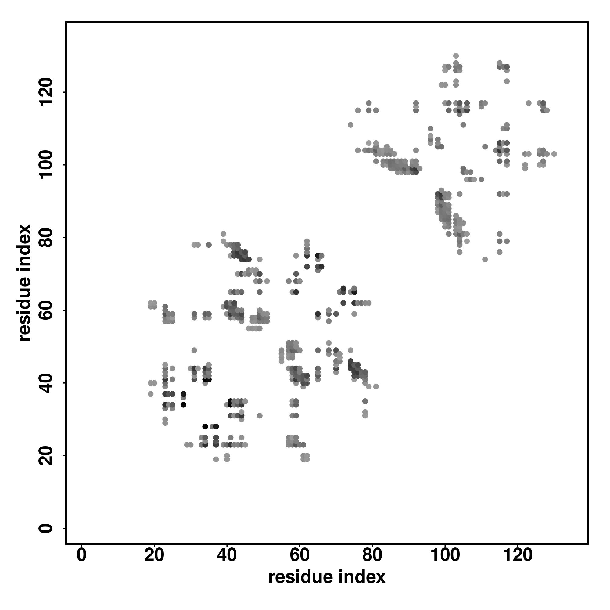 For the contact map, each dot represents a residue pair with predicted contact,