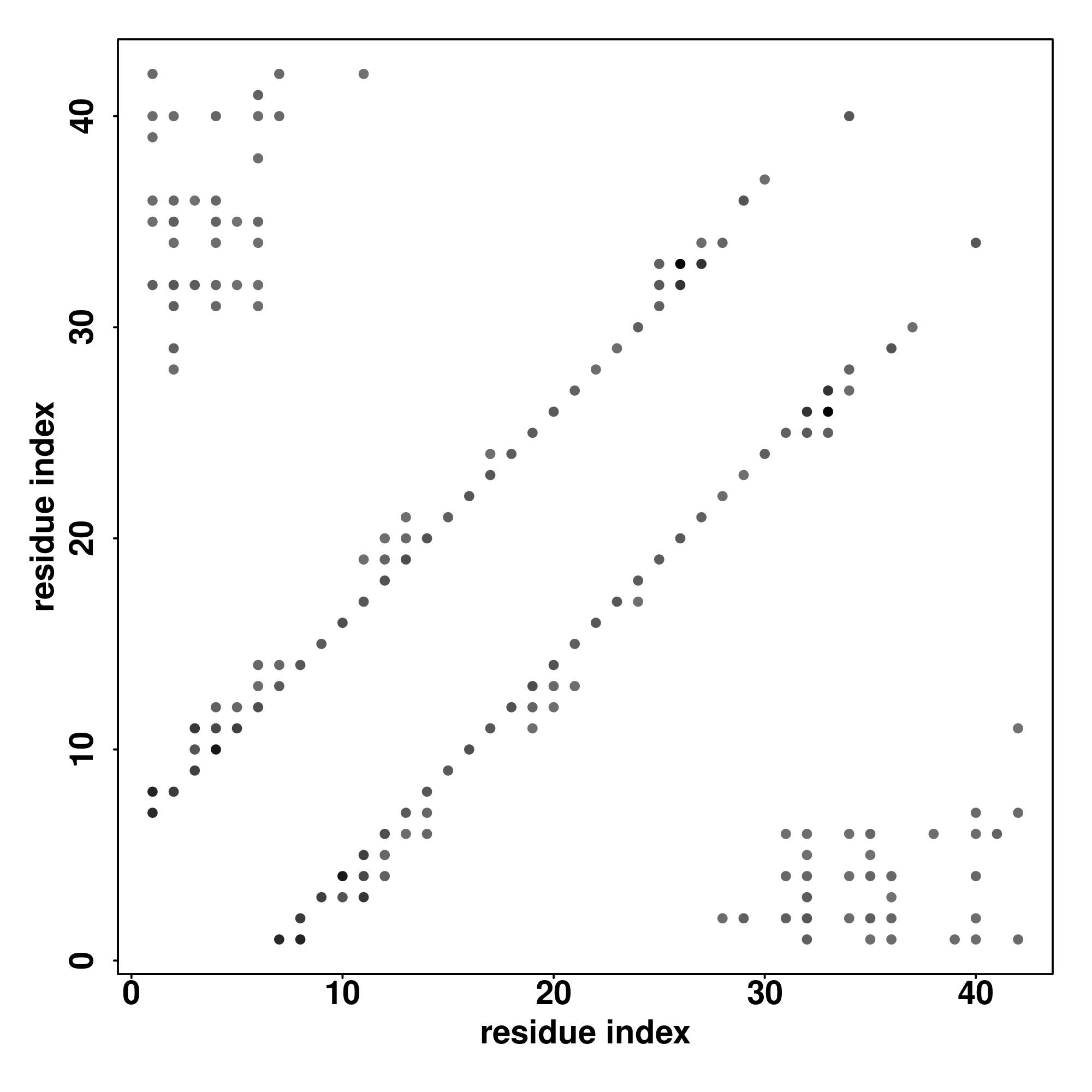 For the contact map, each dot represents a residue pair with predicted contact,