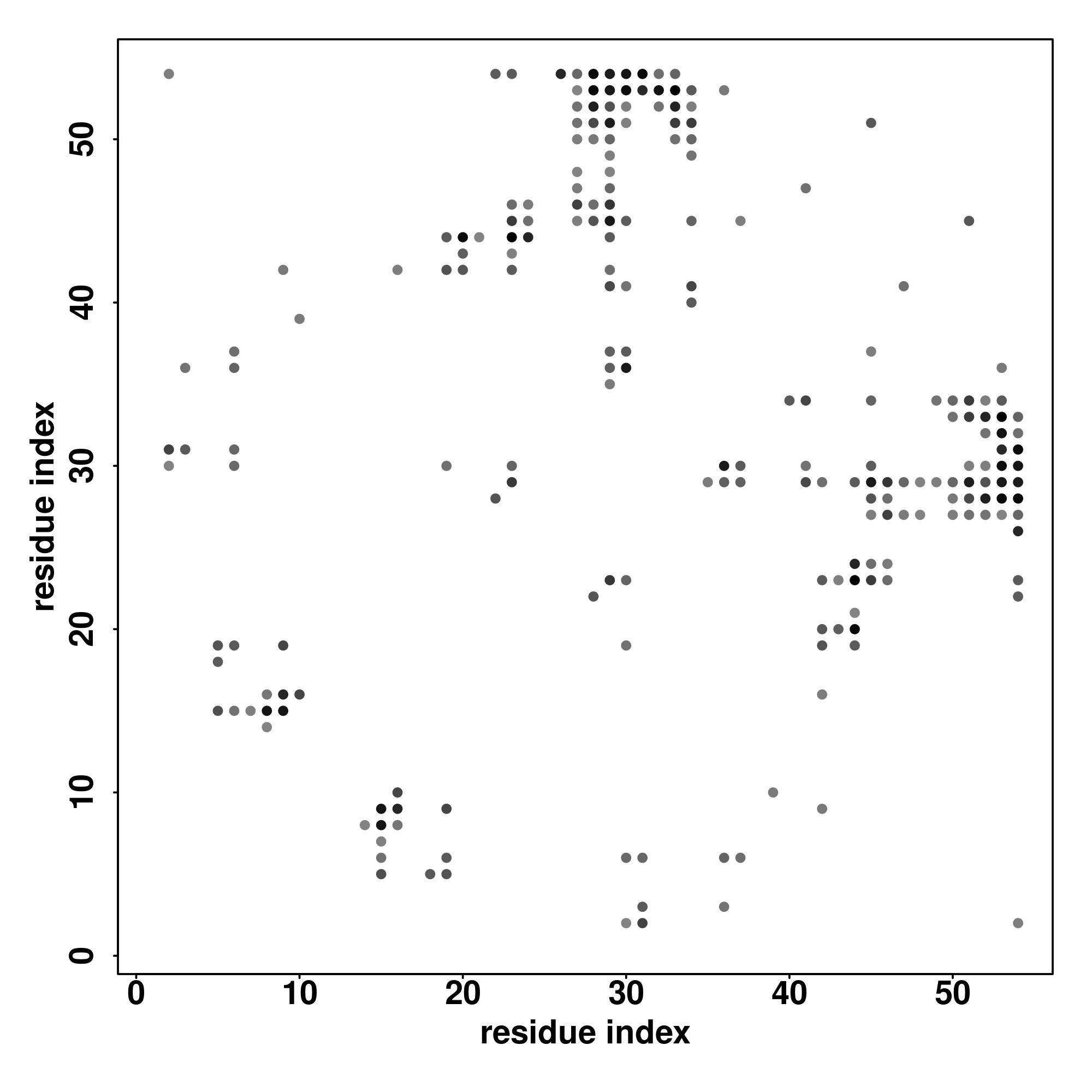 For the contact map, each dot represents a residue pair with predicted contact,