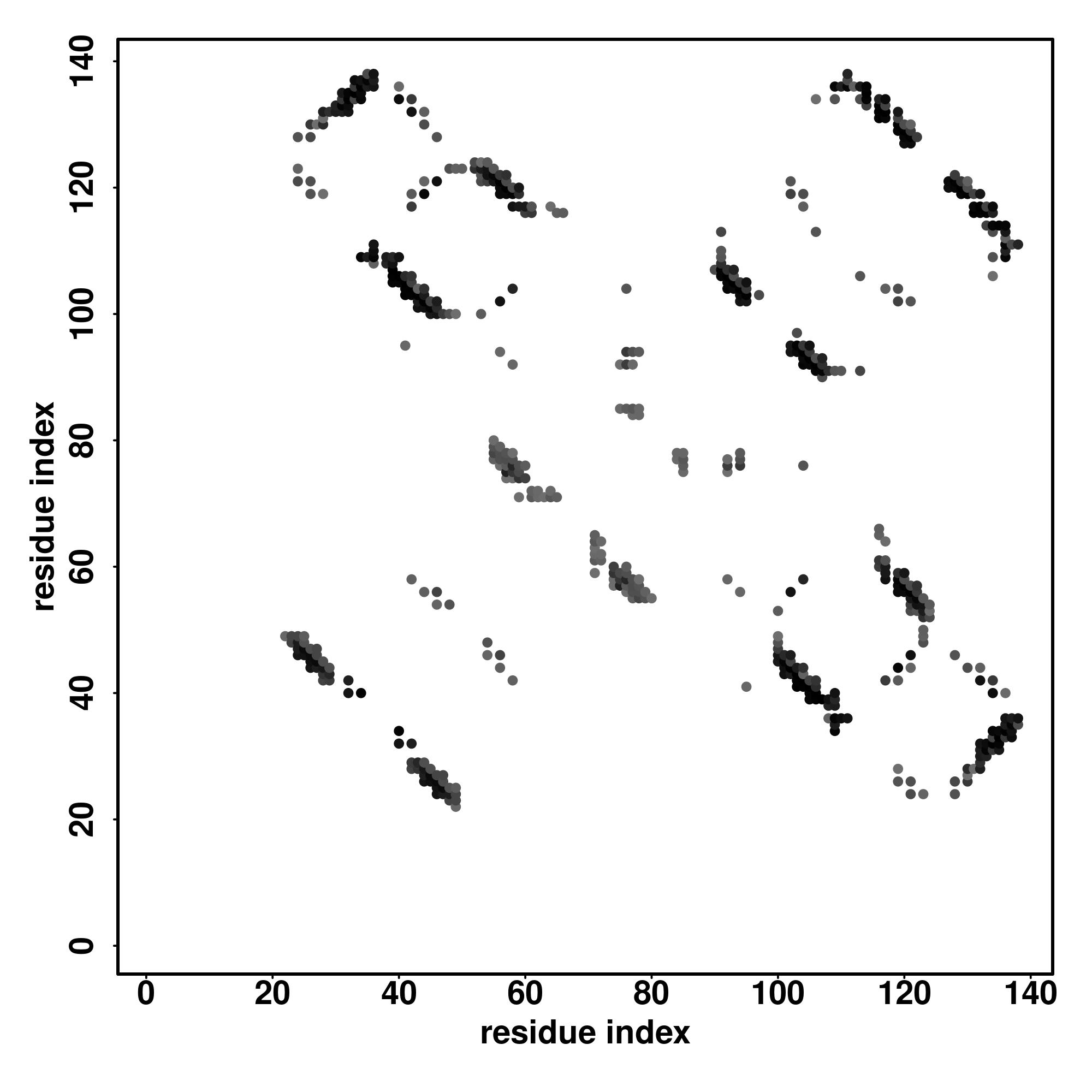 For the contact map, each dot represents a residue pair with predicted contact,