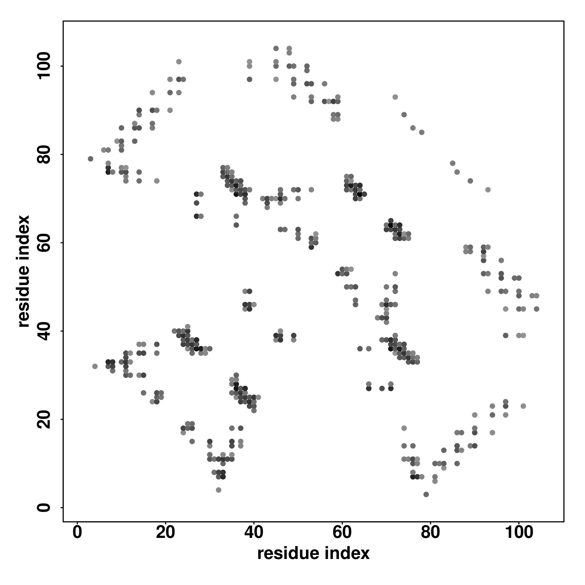For the contact map, each dot represents a residue pair with predicted contact,