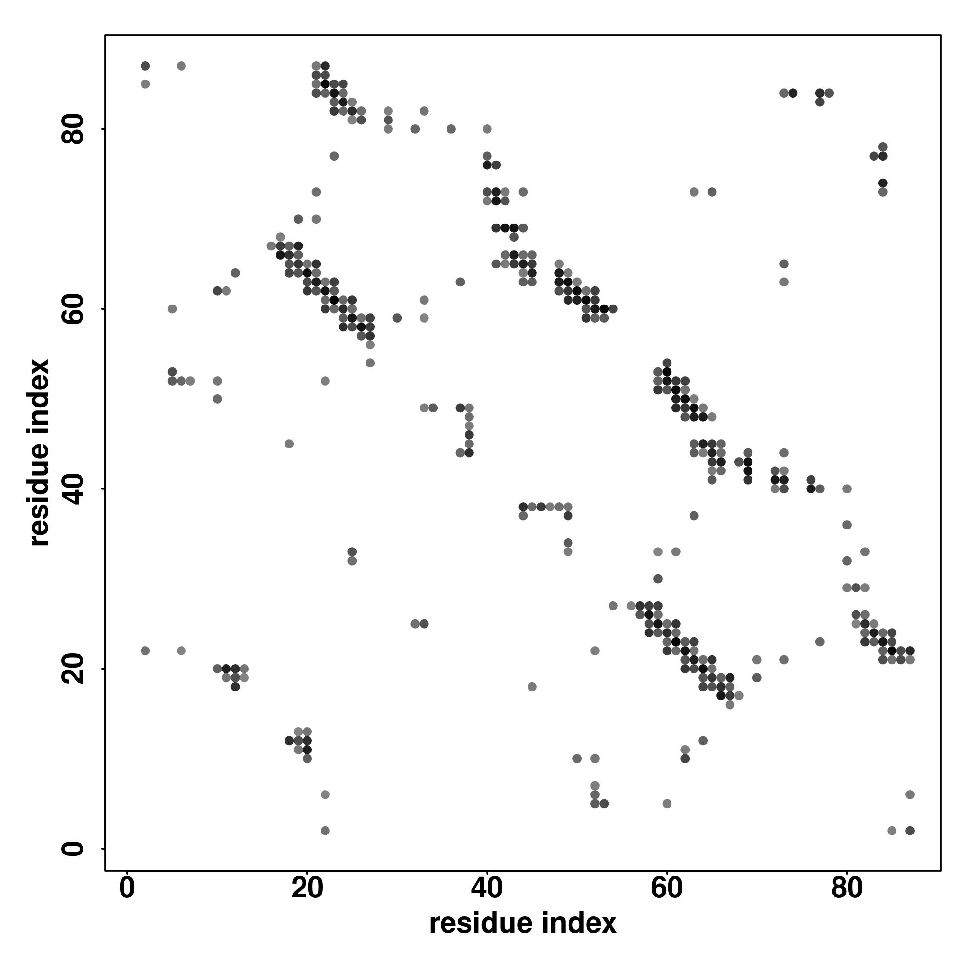 For the contact map, each dot represents a residue pair with predicted contact,