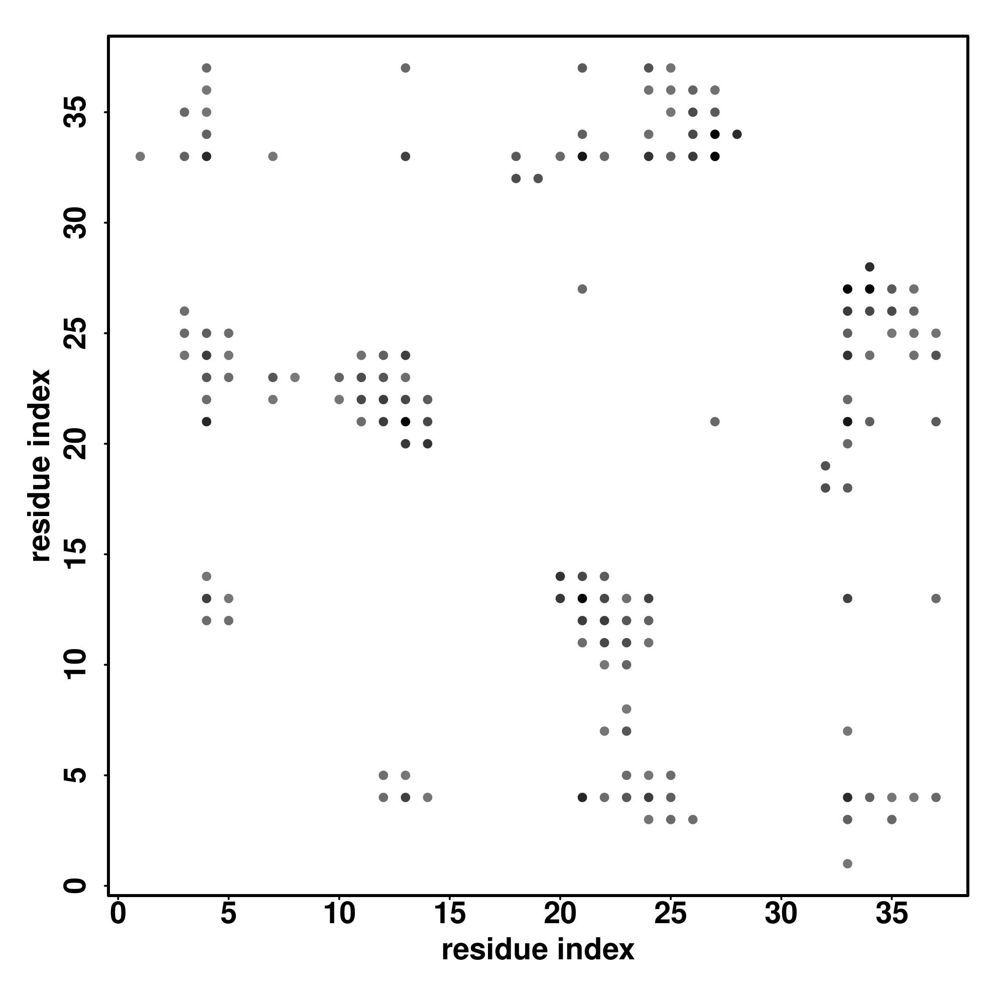 For the contact map, each dot represents a residue pair with predicted contact,