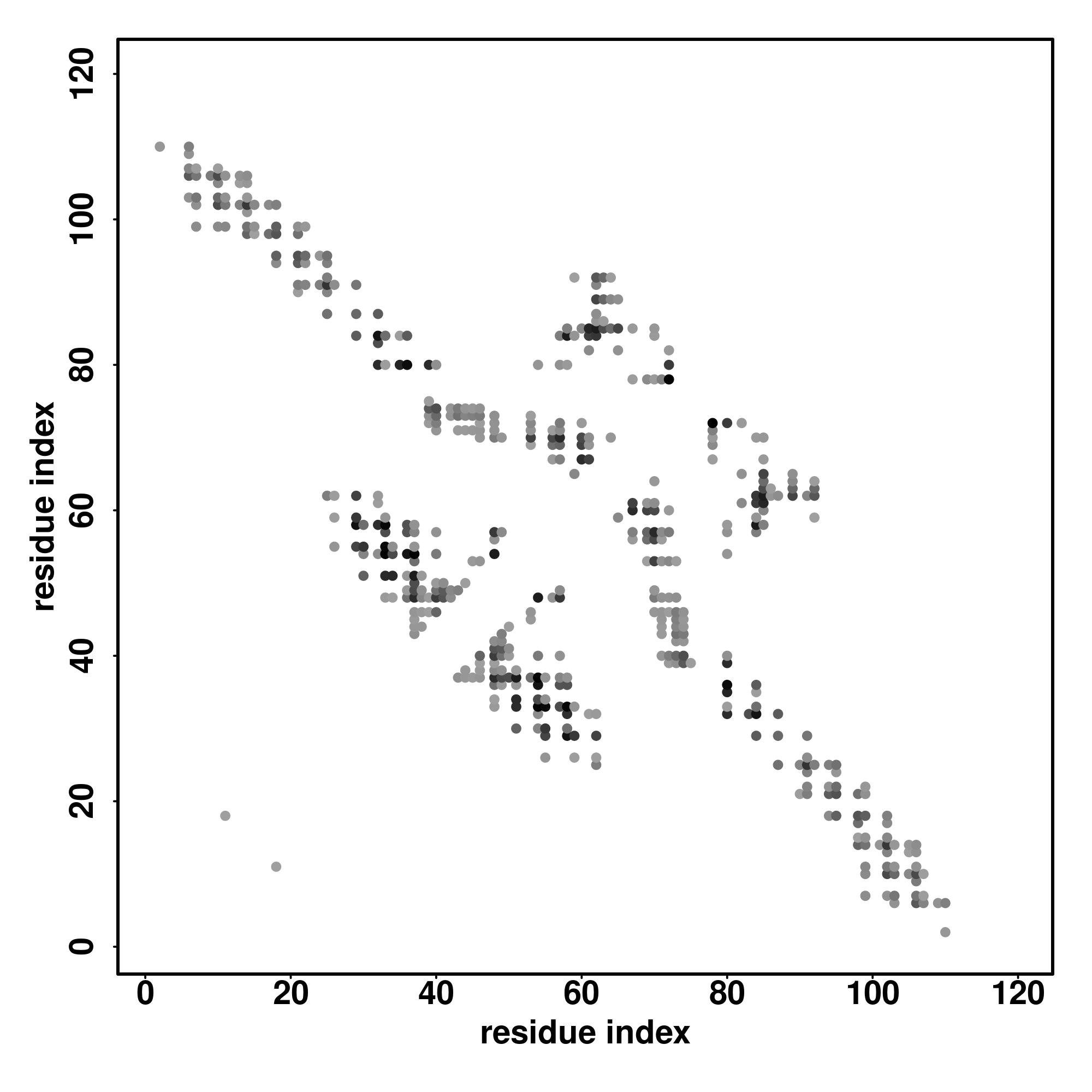 For the contact map, each dot represents a residue pair with predicted contact,