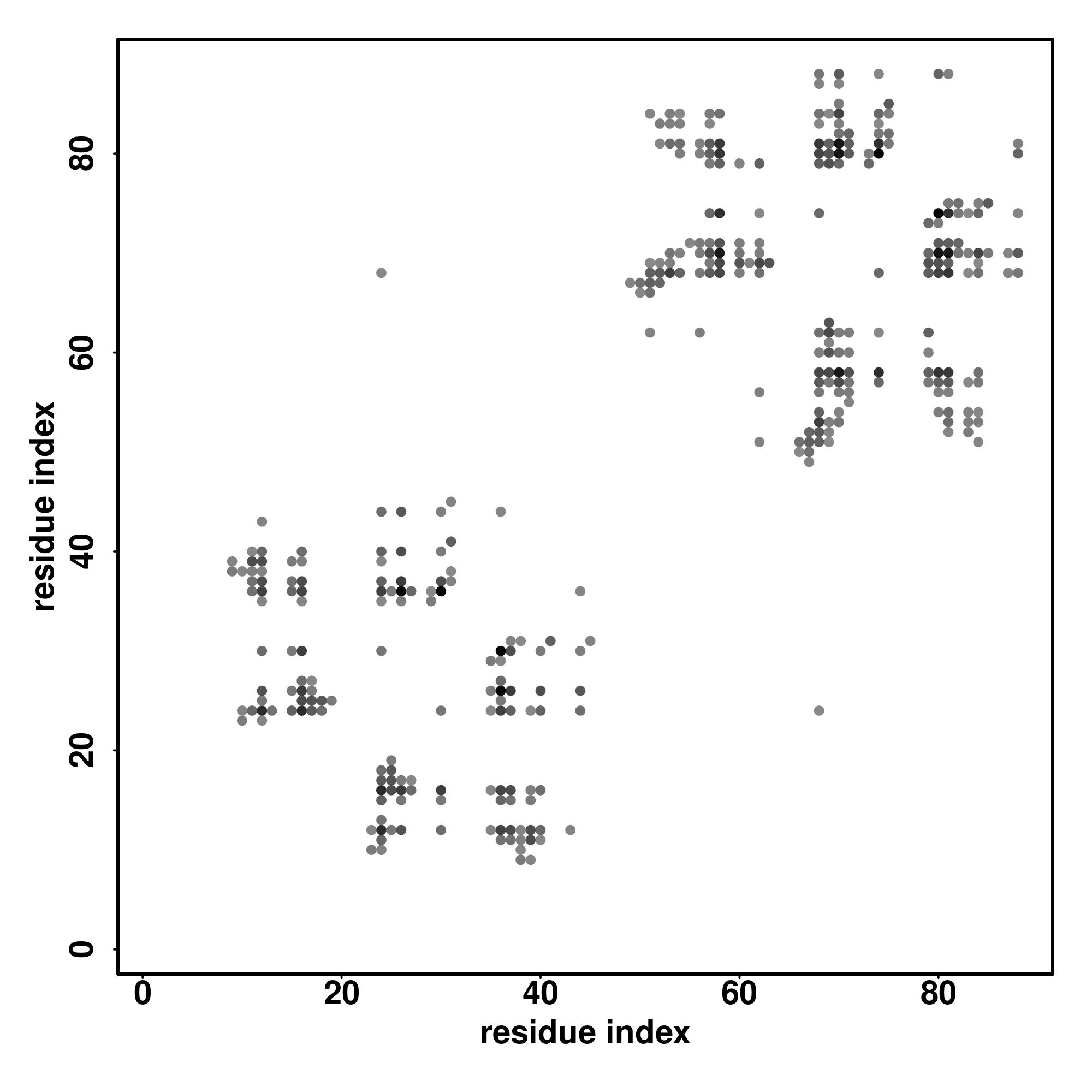 For the contact map, each dot represents a residue pair with predicted contact,