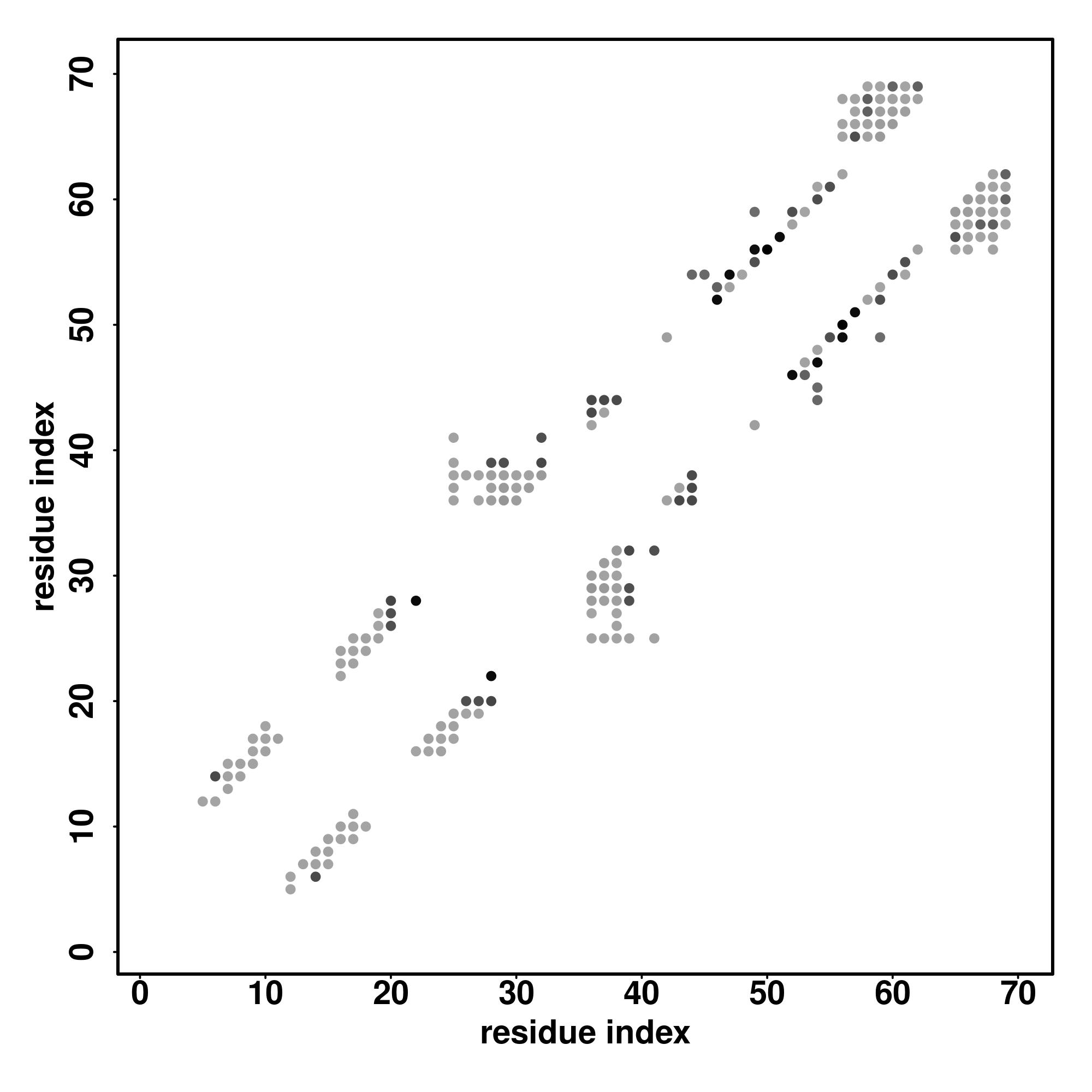 For the contact map, each dot represents a residue pair with predicted contact,