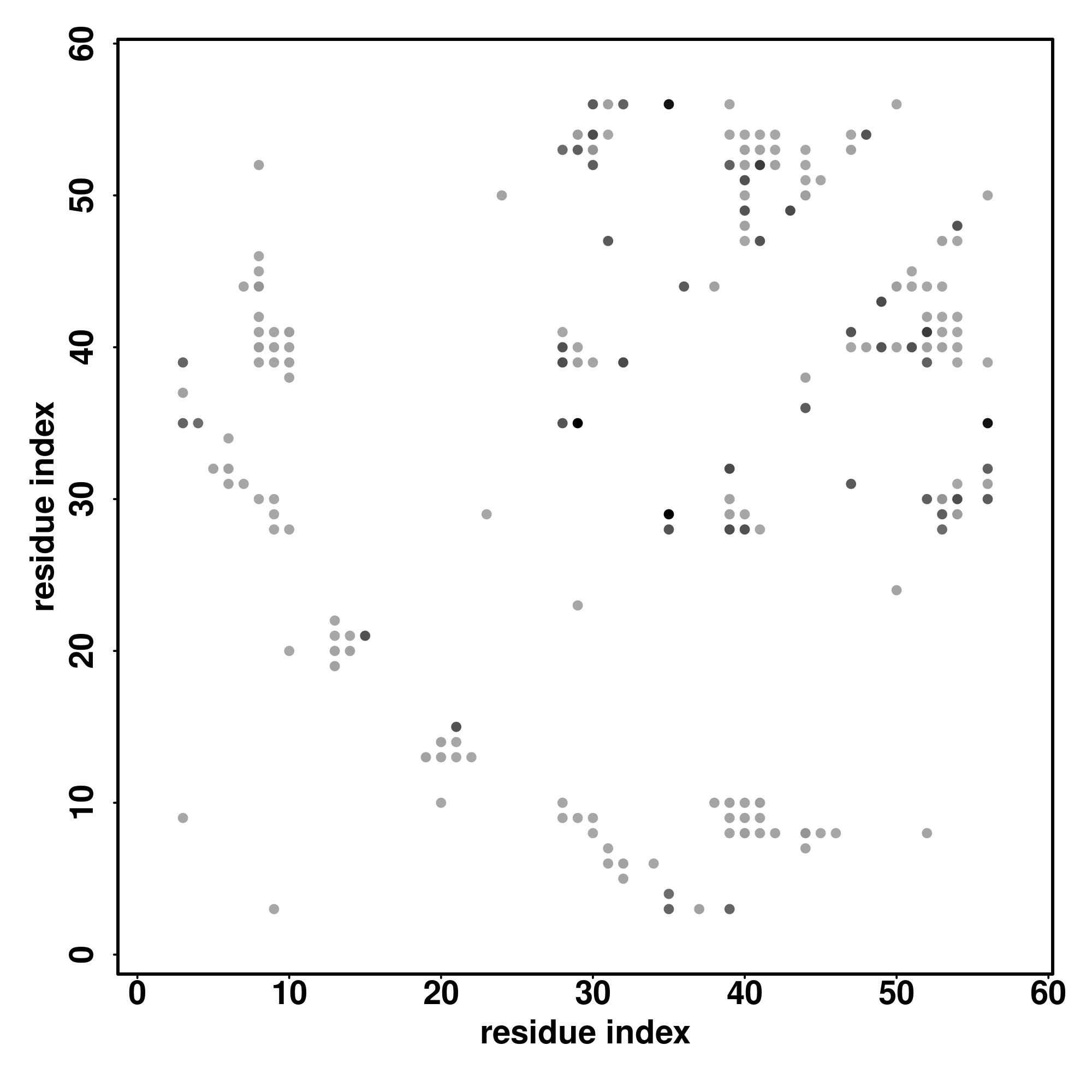 For the contact map, each dot represents a residue pair with predicted contact,