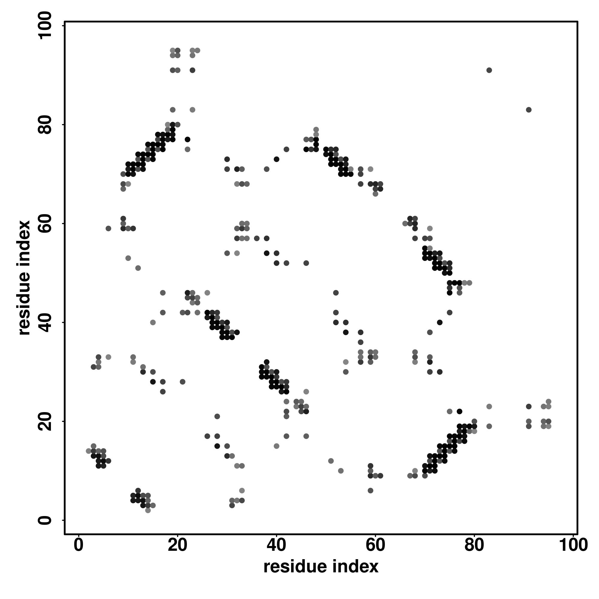 For the contact map, each dot represents a residue pair with predicted contact,