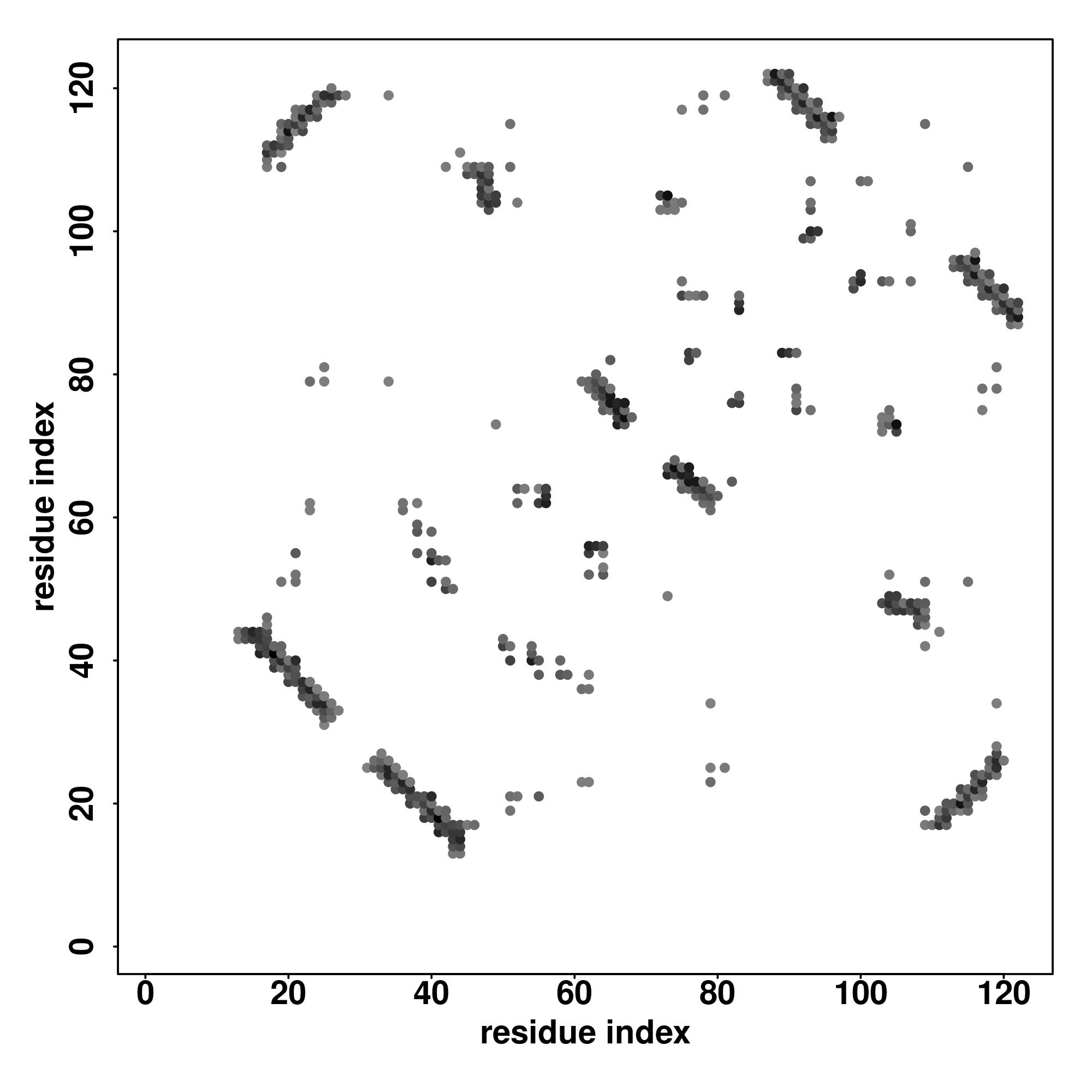 | Values range from 0 (buried residue) to 8 (highly exposed residue) | |