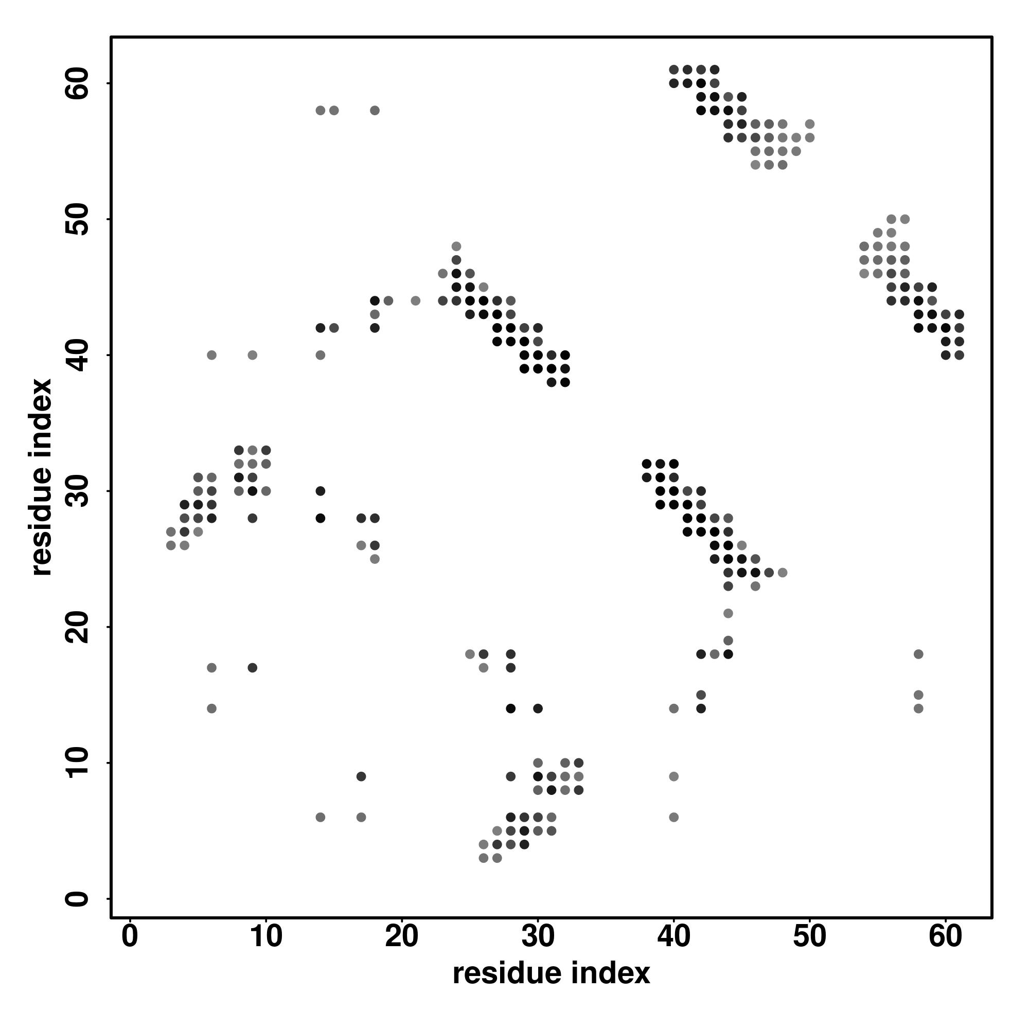 For the contact map, each dot represents a residue pair with predicted contact,