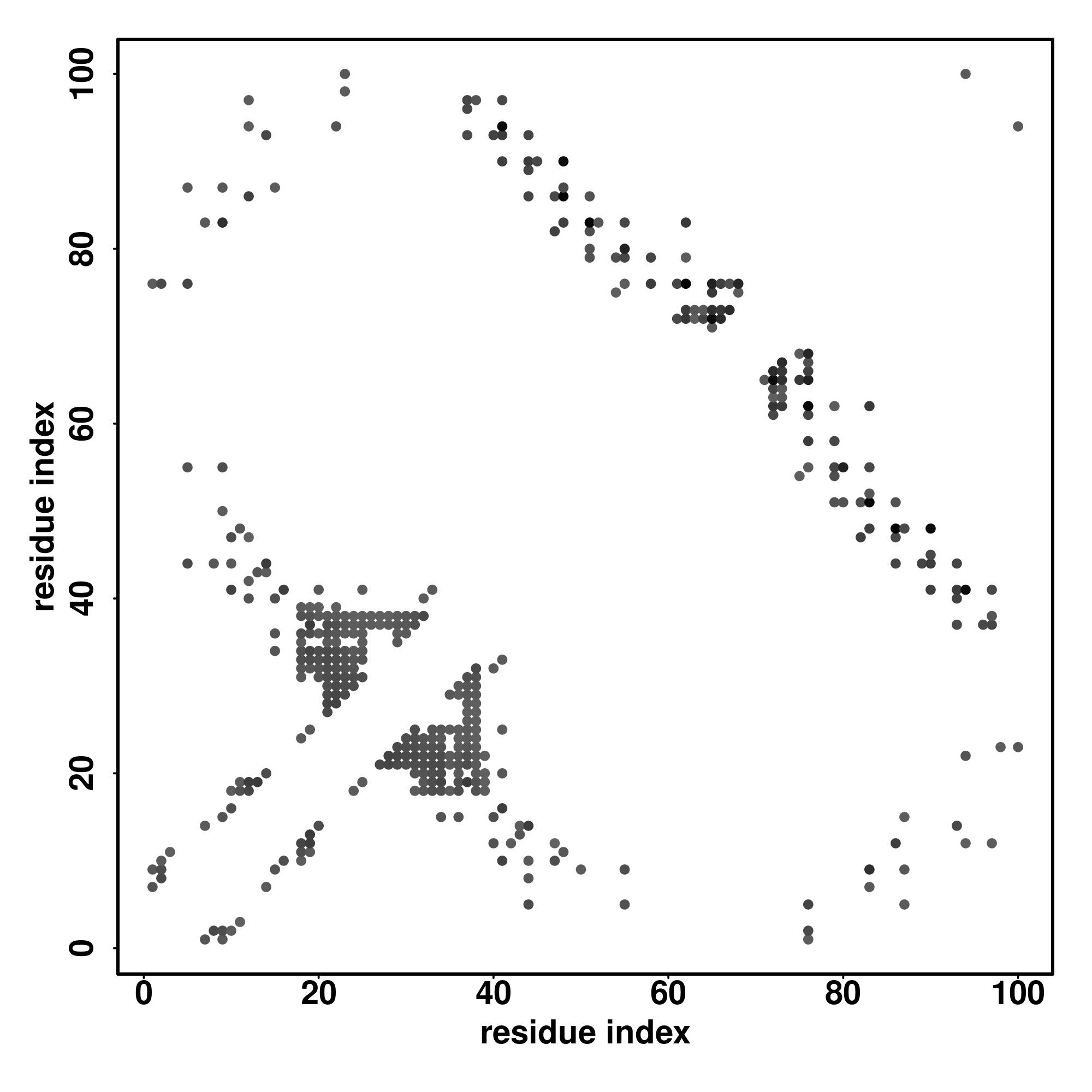 For the contact map, each dot represents a residue pair with predicted contact,
