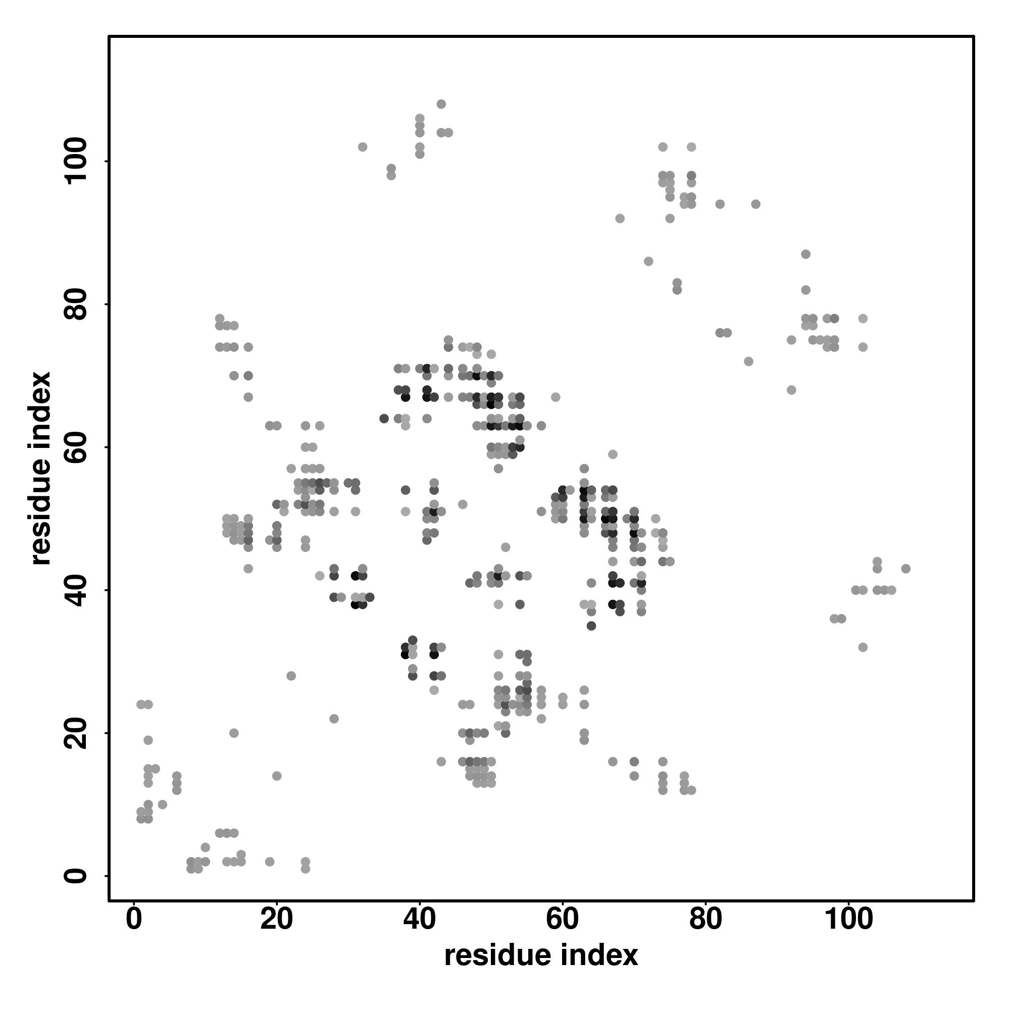 For the contact map, each dot represents a residue pair with predicted contact,
