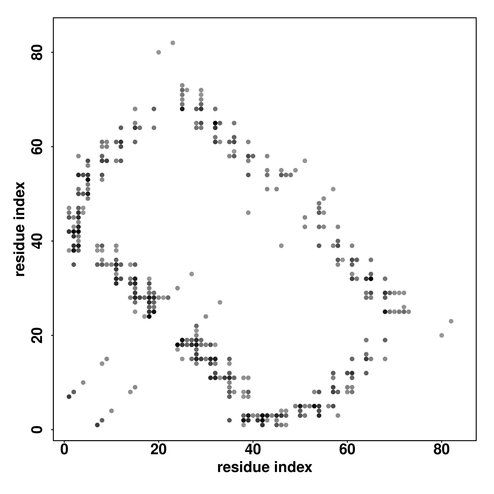 For the contact map, each dot represents a residue pair with predicted contact,