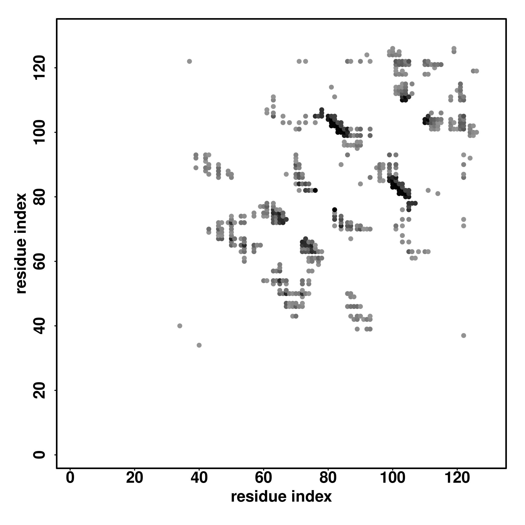 For the contact map, each dot represents a residue pair with predicted contact,