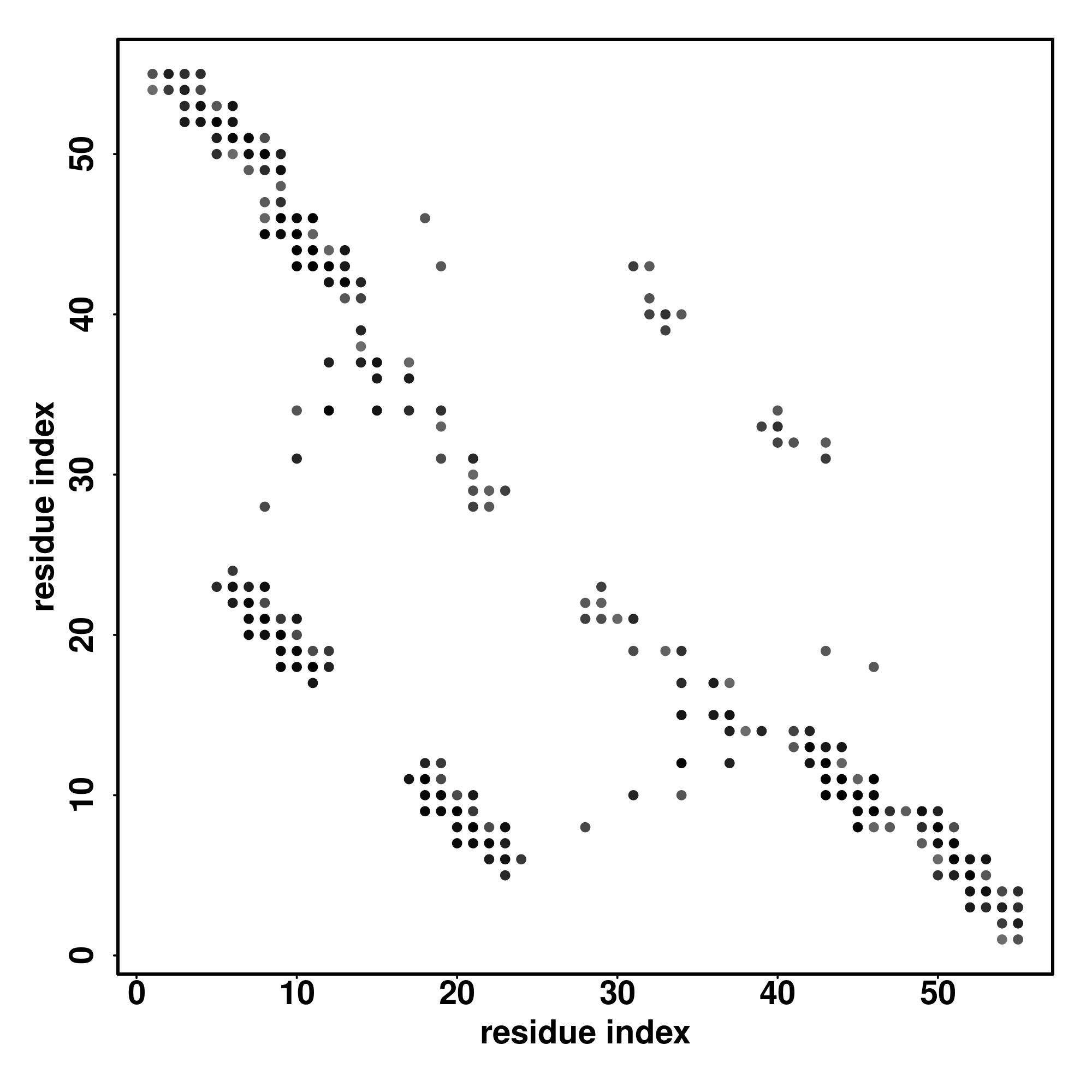 For the contact map, each dot represents a residue pair with predicted contact,