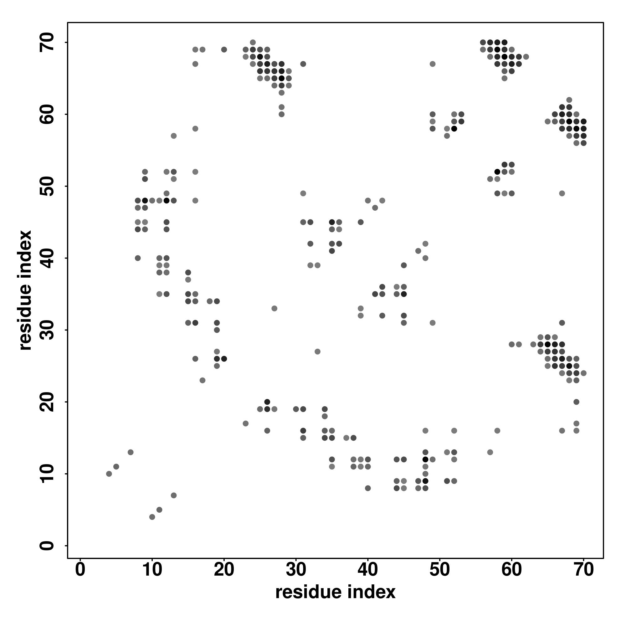 For the contact map, each dot represents a residue pair with predicted contact,