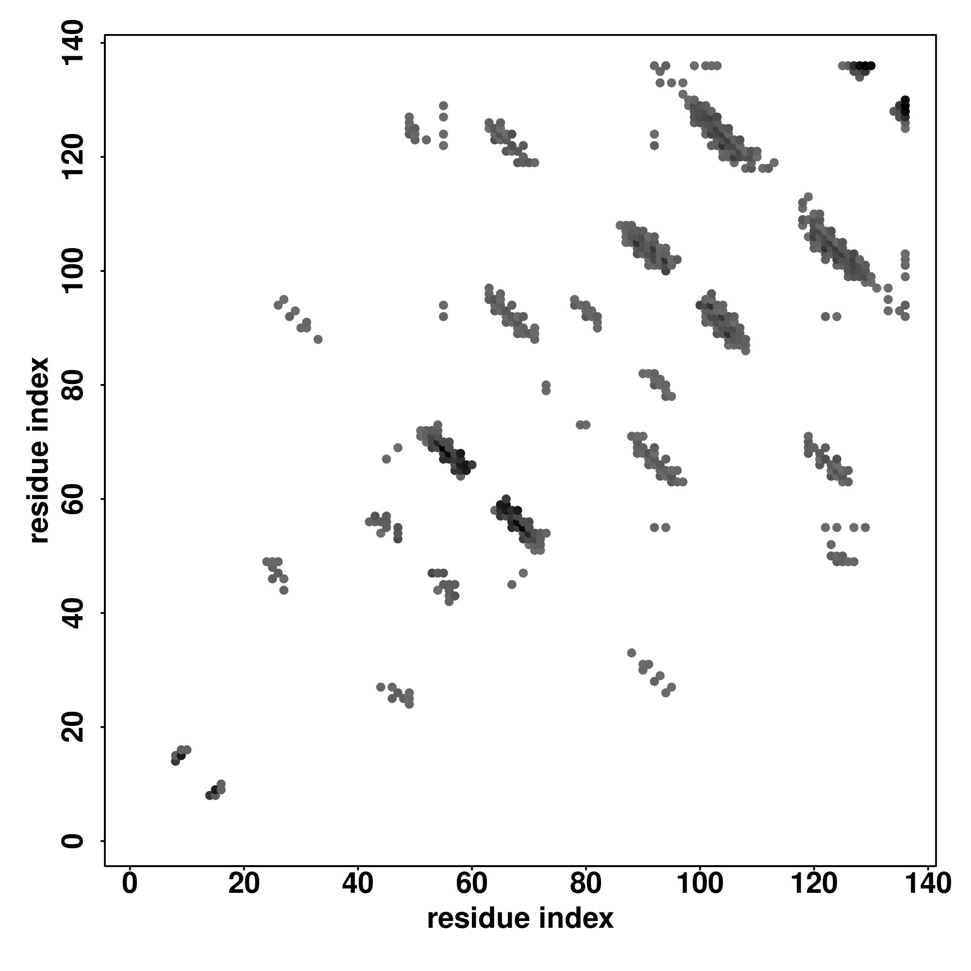 For the contact map, each dot represents a residue pair with predicted contact,