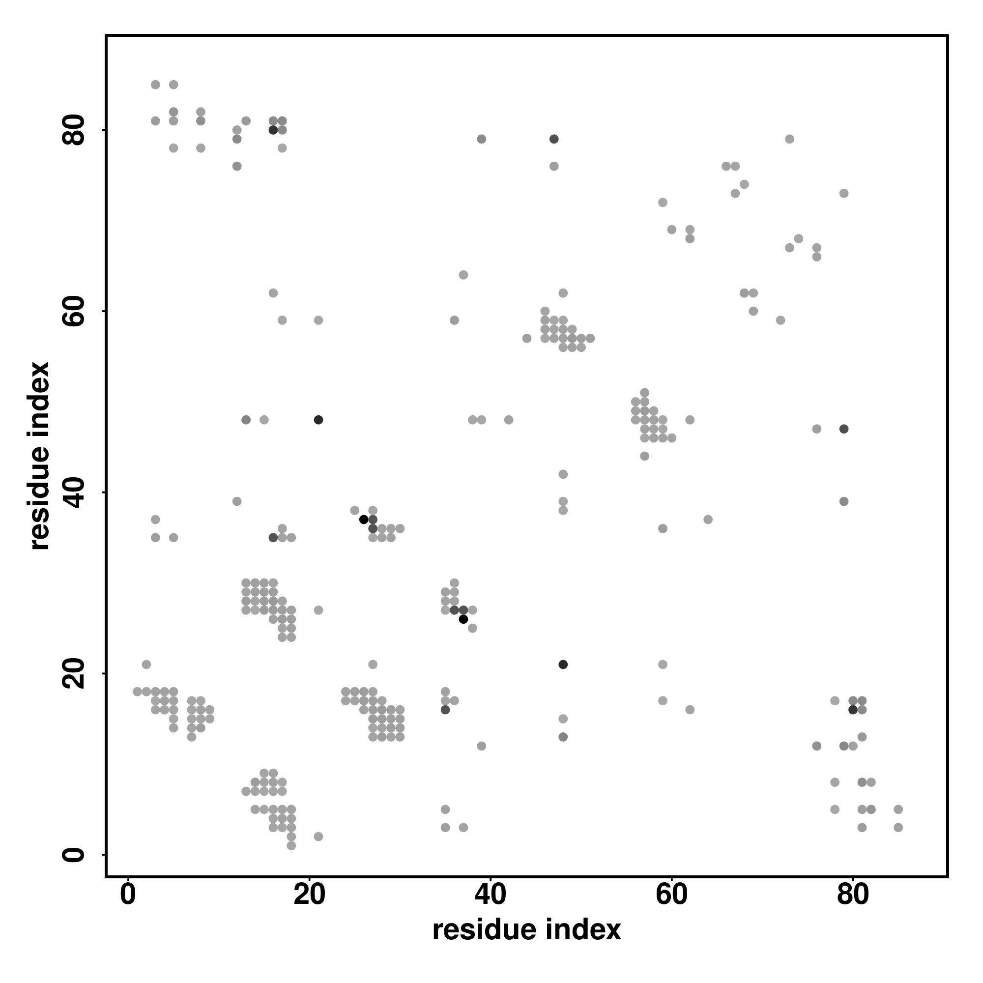 For the contact map, each dot represents a residue pair with predicted contact,