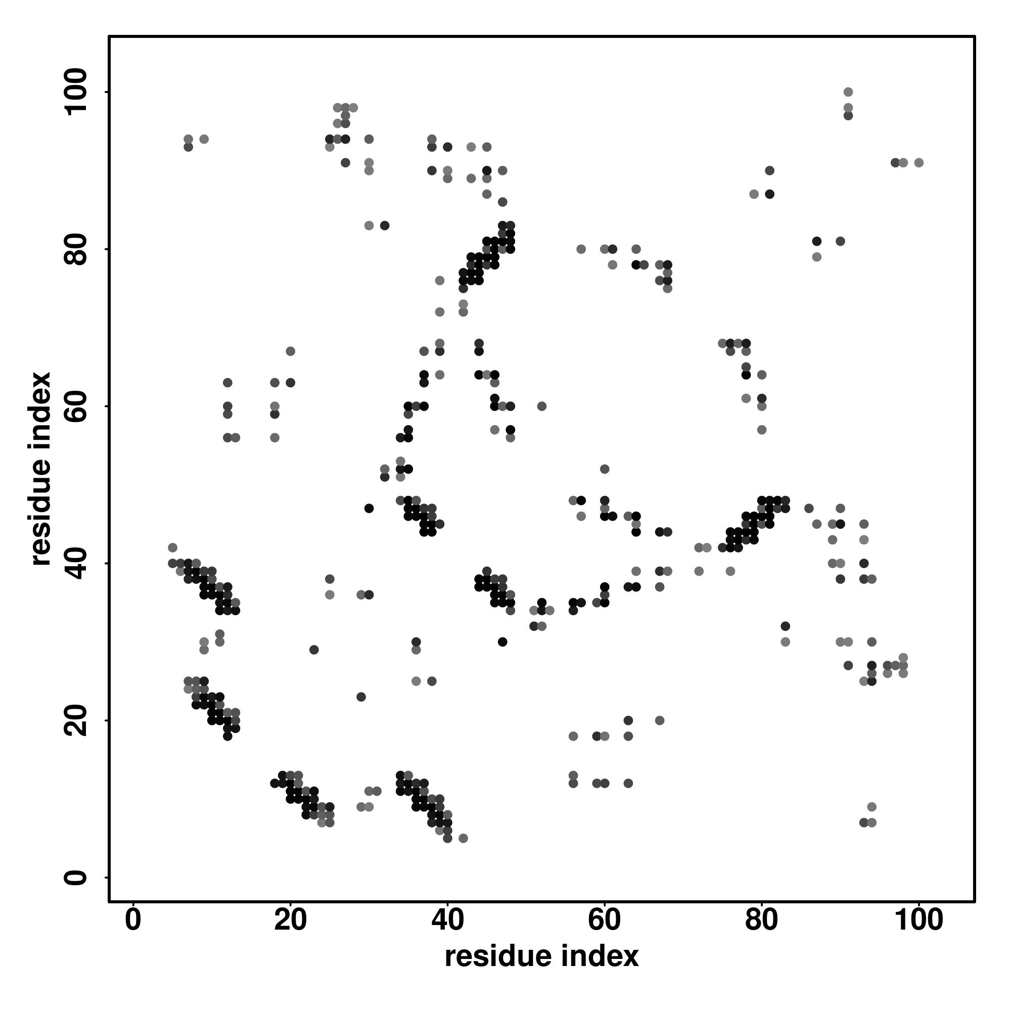 For the contact map, each dot represents a residue pair with predicted contact,